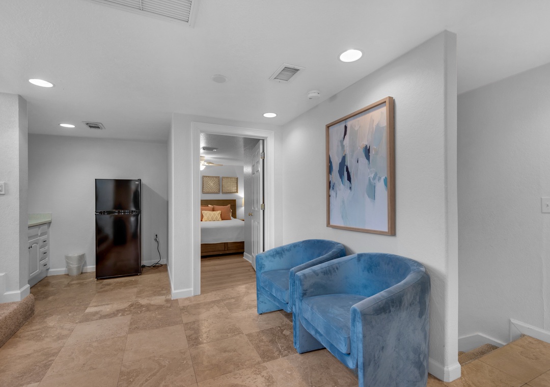 Small Living Area + Kitchenette + 1 Full Bathroom