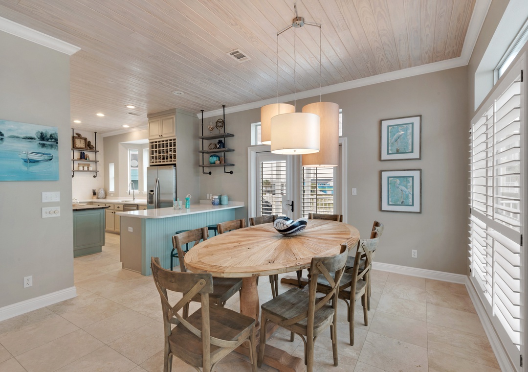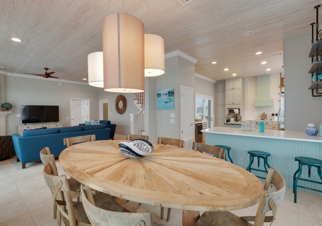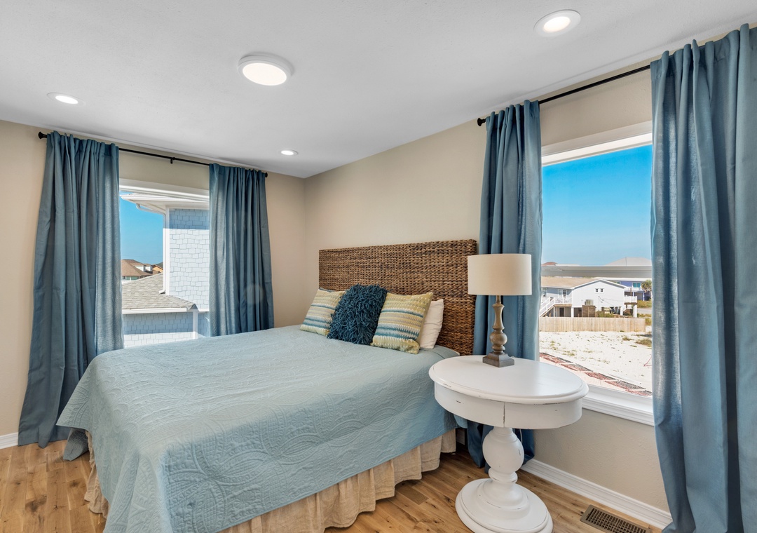 Upstairs, five additional bedrooms offer a mix of king, queen, and custom bunk configurations to accommodate all group types. Multiple rooms offer Gulf views and share three full bathrooms, including an en-suite bunk suite with two queens and two twins. With multiple sleeping arrangements and flexible common spaces, this home balances togetherness with privacy.