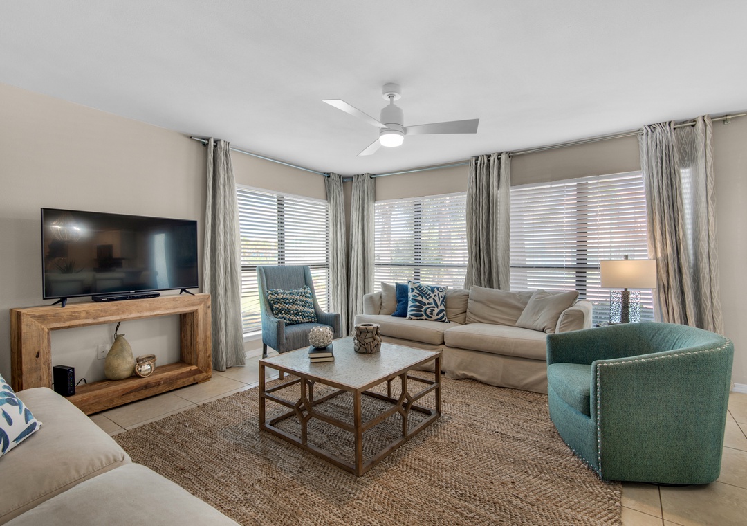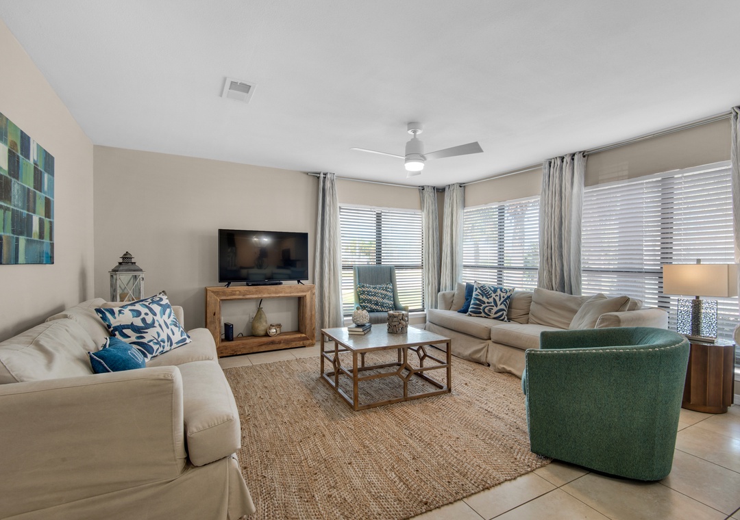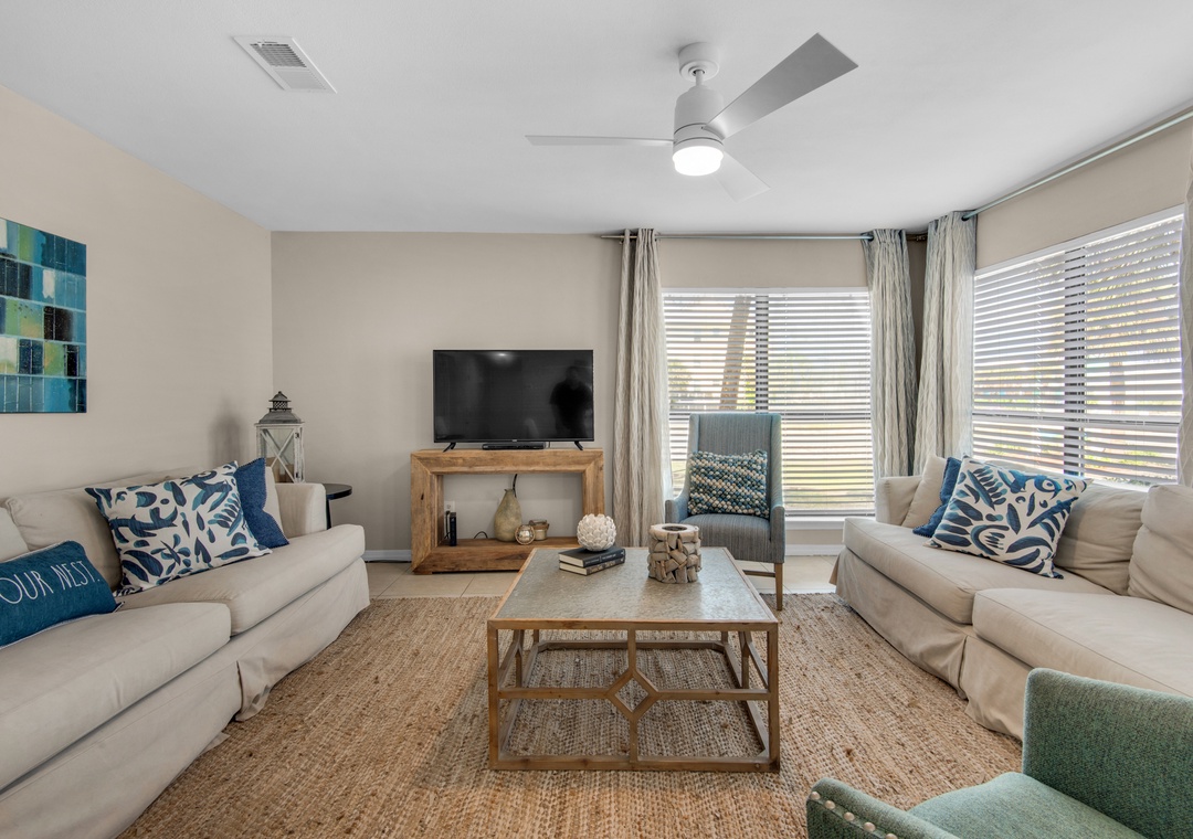 * Large Flat-Screen TVs in Living Room and Both Bedrooms