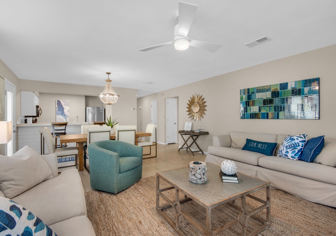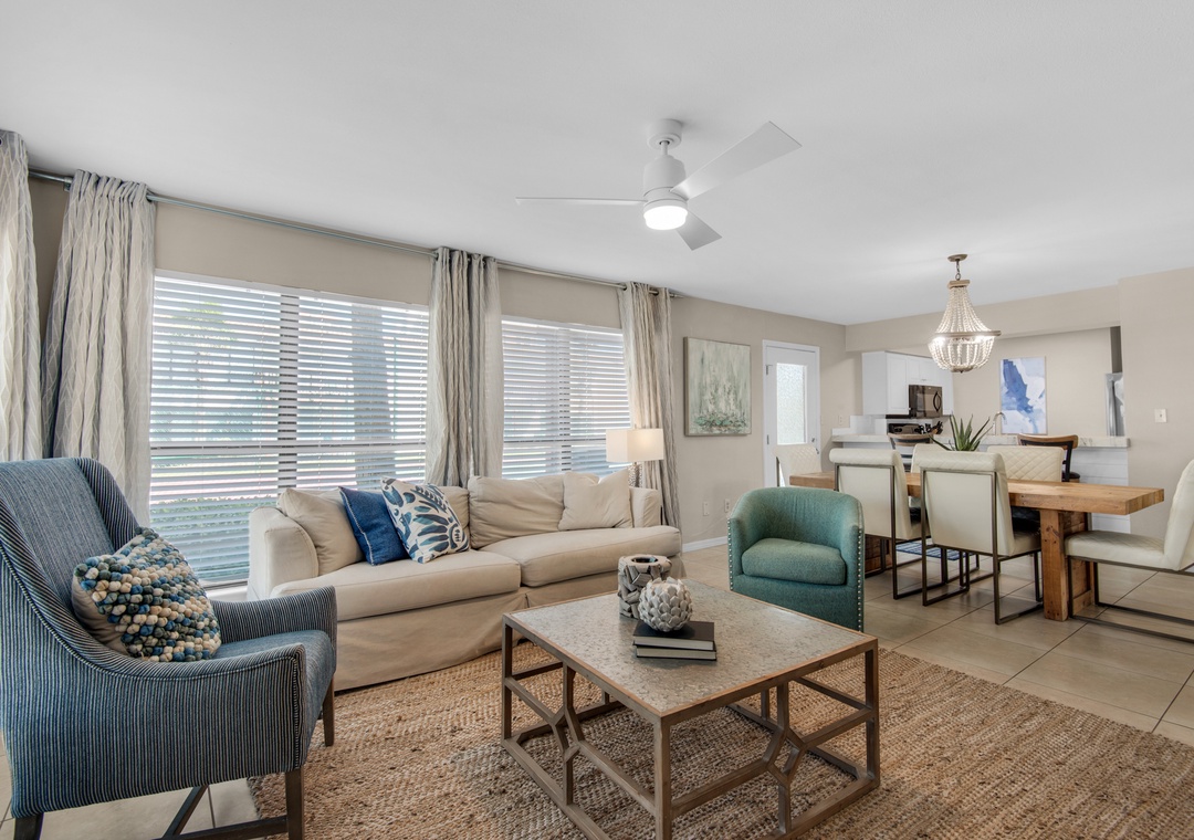 * Spacious Open Living, Dining and Kitchen Area