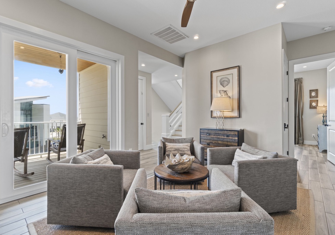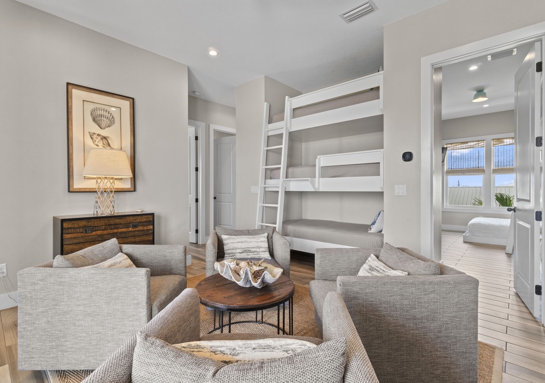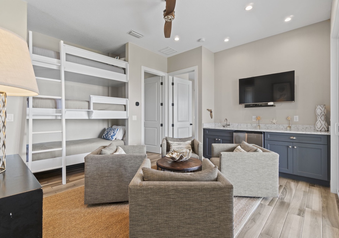 * Second-Floor Lounge with Wet Bar + Built-In Bunks