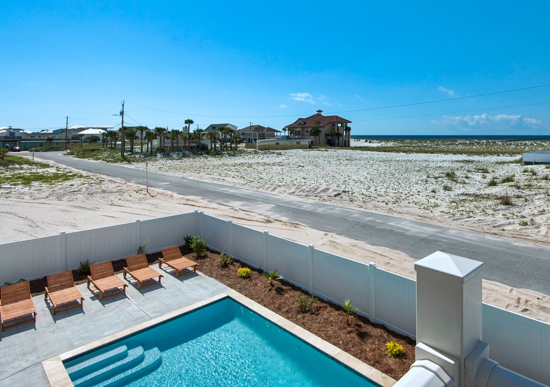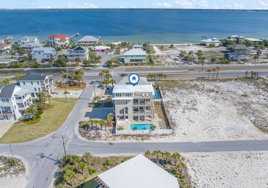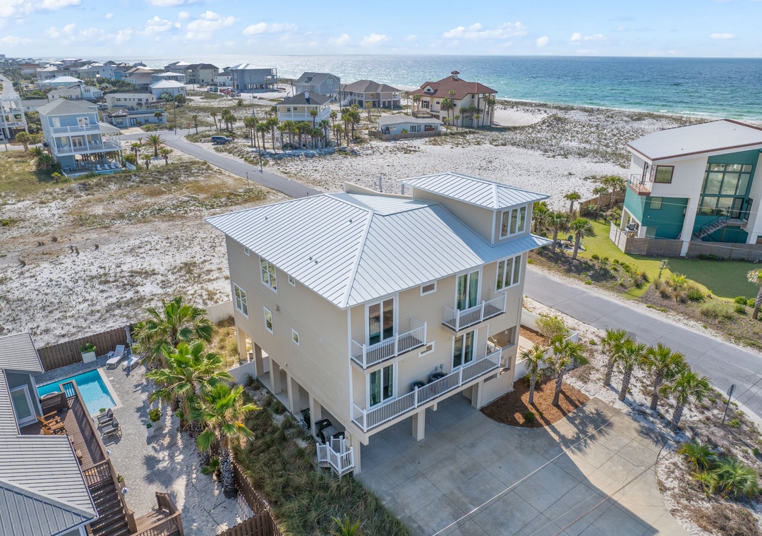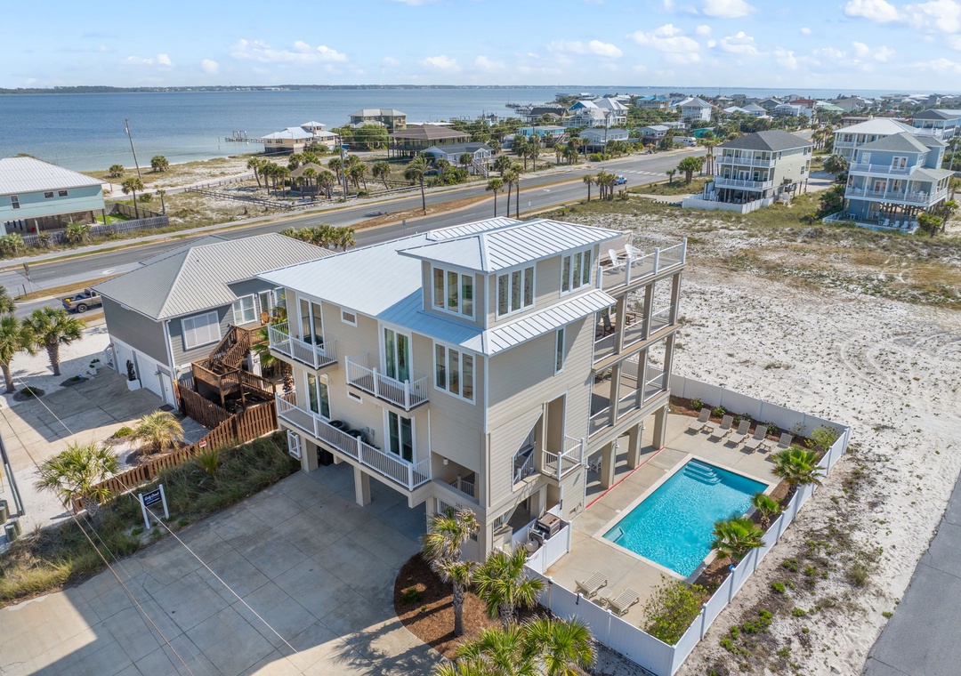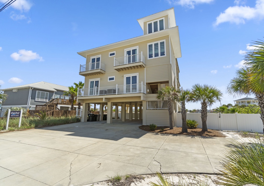 Welcome to Castle de Playa, a one-of-a-kind luxury retreat on Pensacola Beach, located just one mile from the main boardwalk area yet tucked into a peaceful residential stretch. This stunning 6-bedroom, 6-bathroom home comfortably sleeps 25 and is ideal for weddings, reunions, or unforgettable family vacations. The property is adjacent to protected county-owned land, granting direct, unobstructed Gulf views and easy beach access.