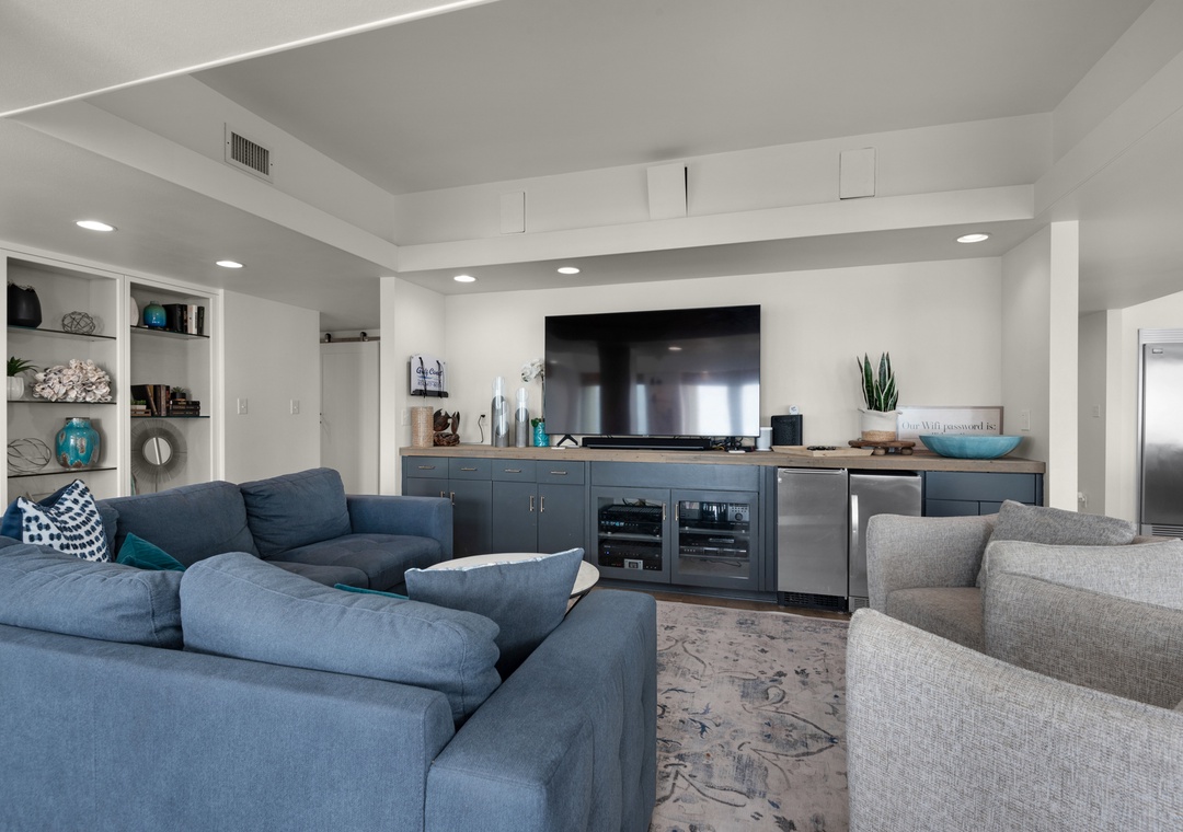* Game Room with Pool Table, TV, Bunks + Lounge Space