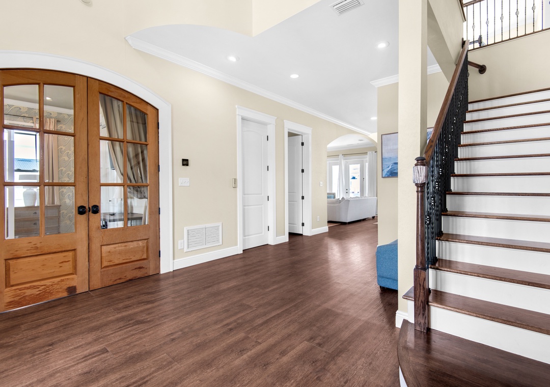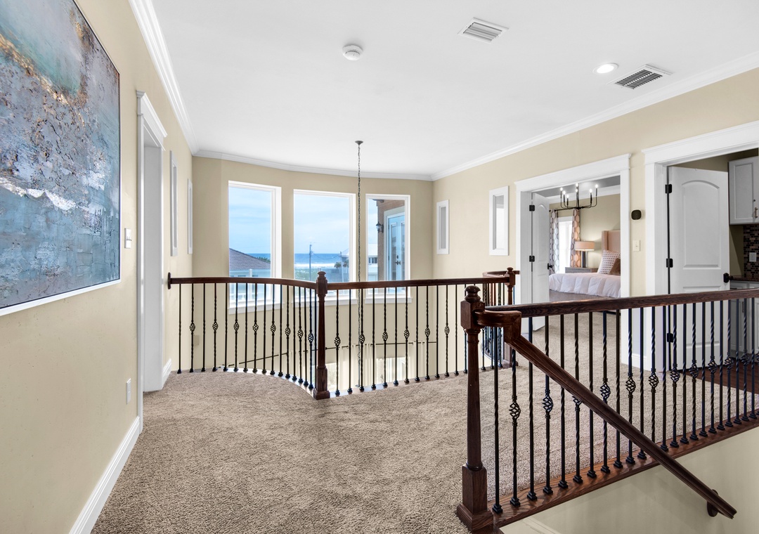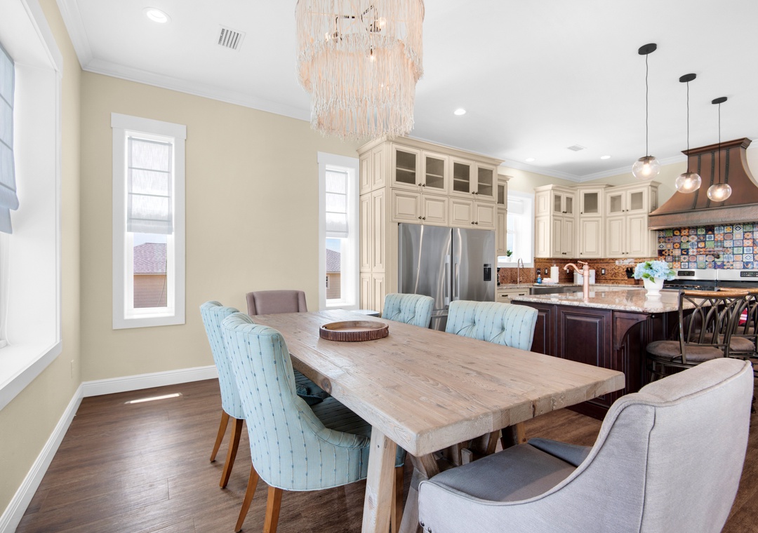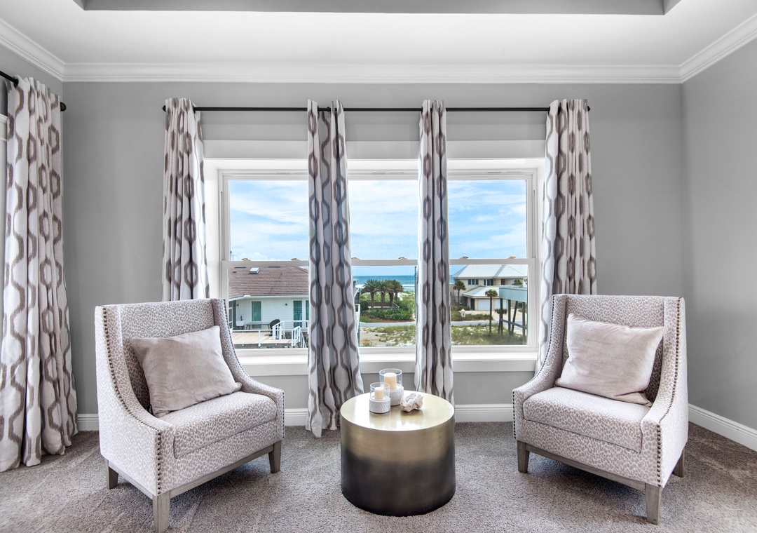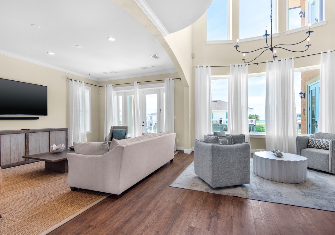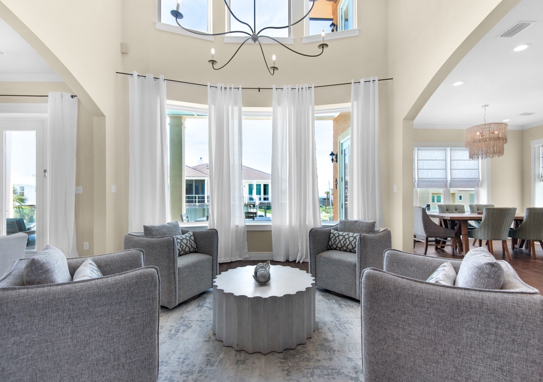 Welcome to Fathom Resort, a newly updated five-bedroom, four-bathroom Pensacola Beach retreat designed for unforgettable vacations. Just steps from the sand via a dedicated path, this Gulf-view home features soaring ceilings, panoramic windows, and designer interiors. Whether you're hosting a multi-family gathering or relaxing with friends, Fathom Resort delivers a luxurious blend of comfort and style.