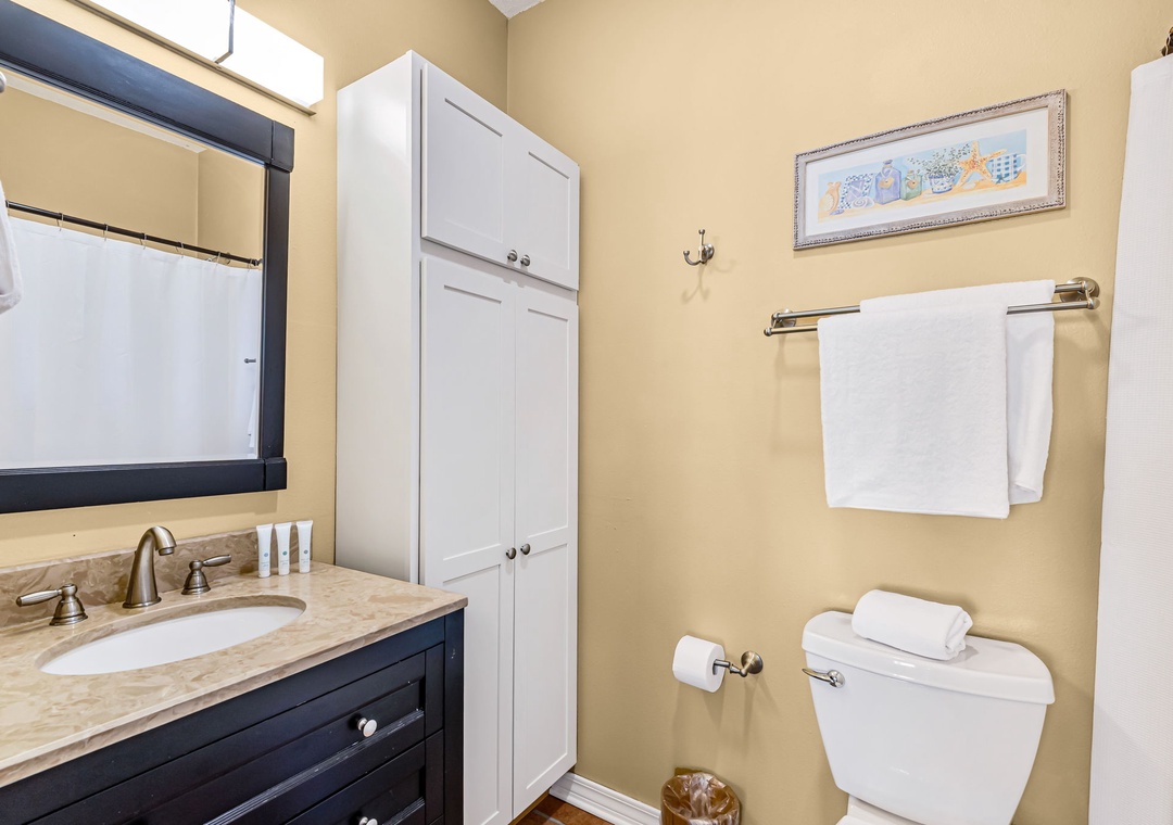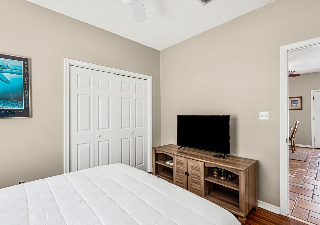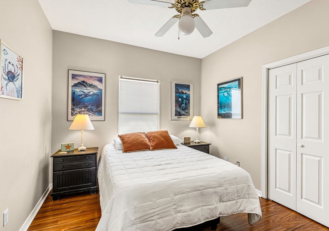 The primary bedroom serves as a peaceful retreat after sun-filled days, while two additional bedrooms provide comfortable accommodations for family or guests.