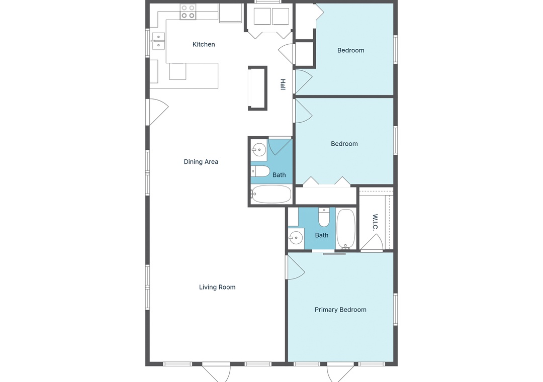 * Spacious 3-Bedroom, 2-Bathroom Layout