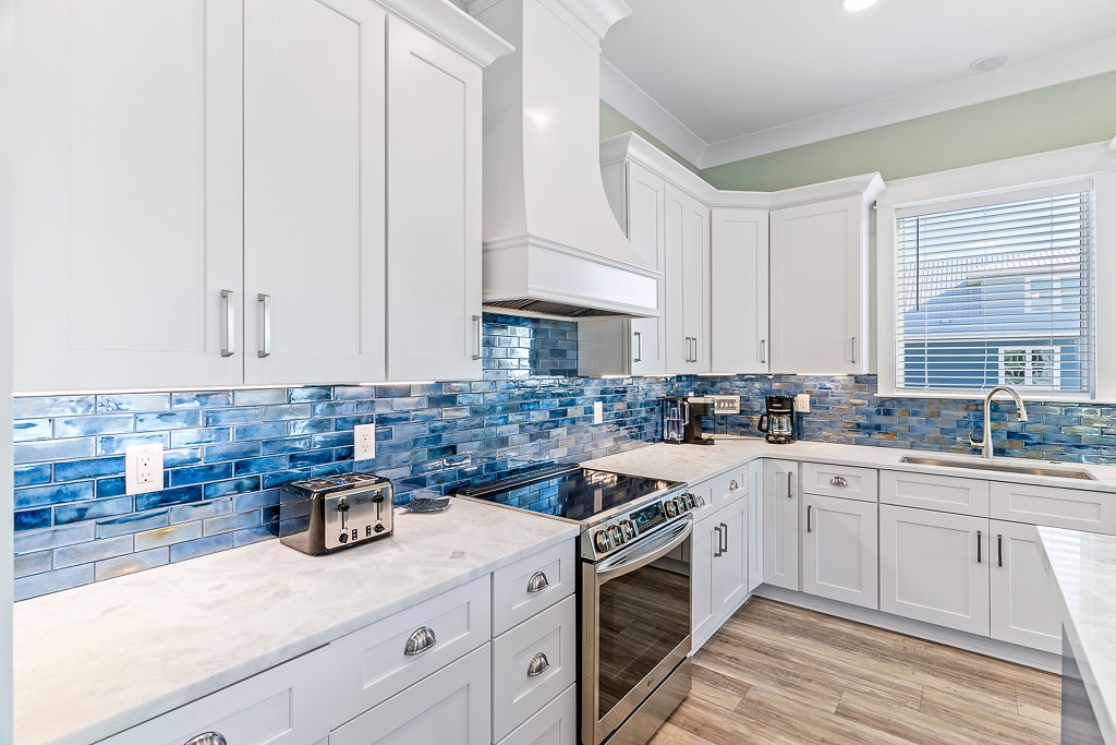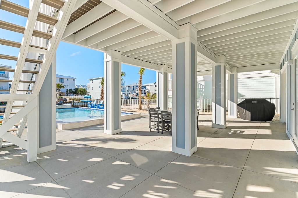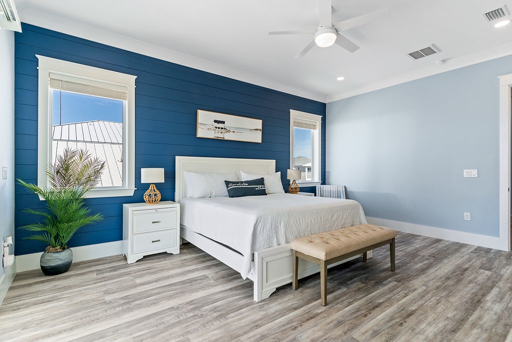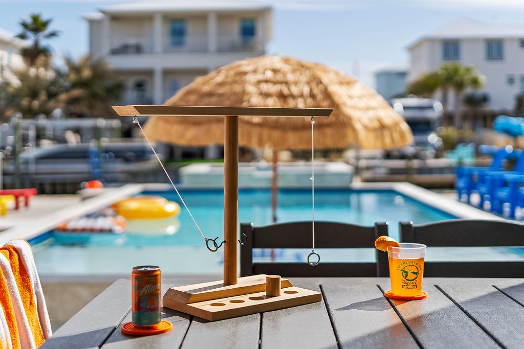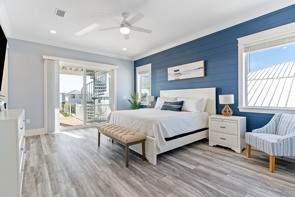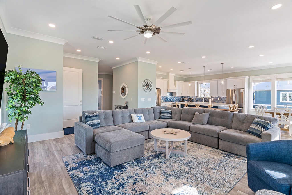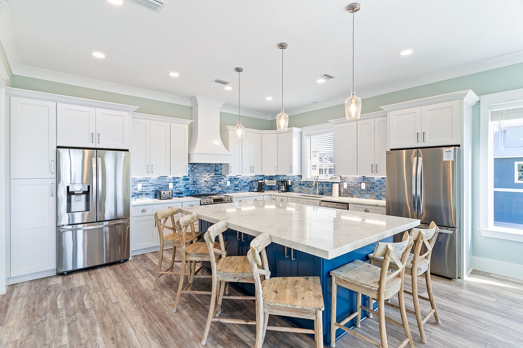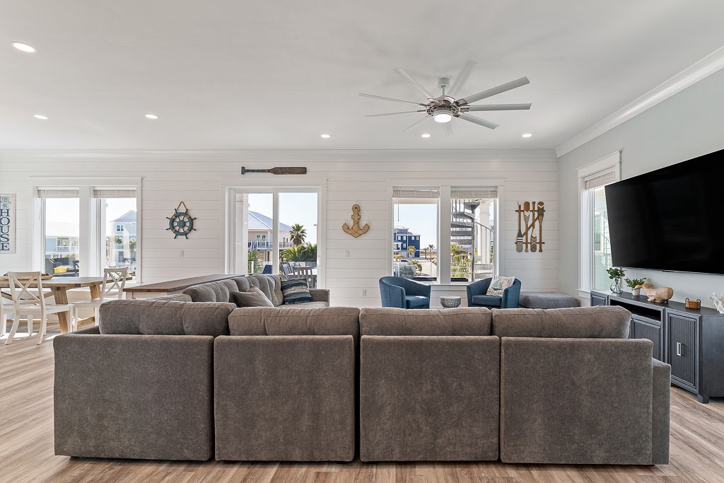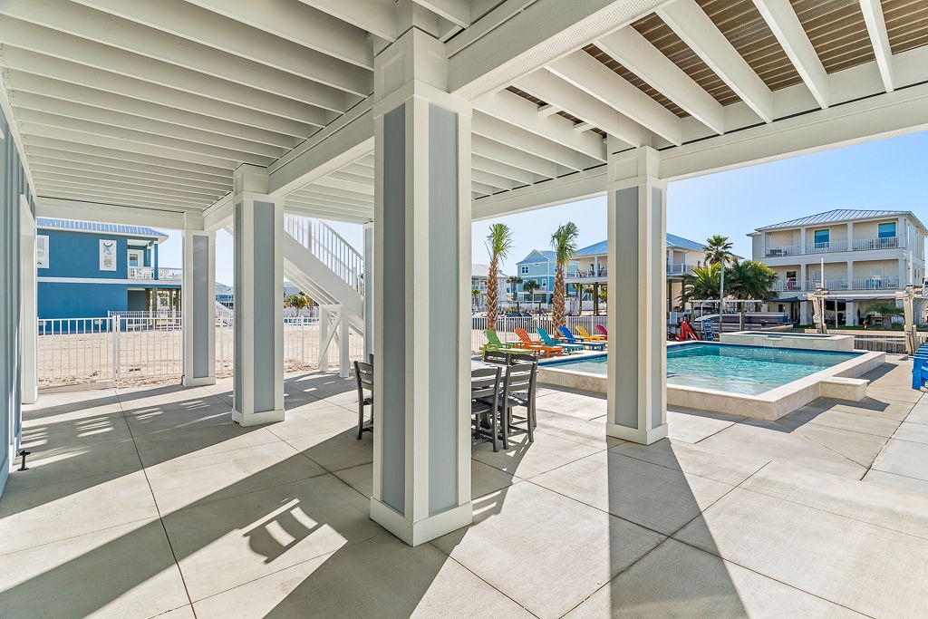 Welcome to Guitars and Tiki Bars, where barefoot luxury meets laid-back island style. Set in Grand Navarre with panoramic Gulf and Sound views, this three-level, 5-bedroom, 7-bathroom beach house is a dream getaway for up to 20 guests. Enjoy sunset cocktails at the garage-level Tiki bar, splash into the private pool and hot tub, or lounge on the expansive rear deck while enjoying canal breezes. Inside, custom furnishings, an open concept living space, and designer coastal finishes create the perfect setting for group connection and relaxation.