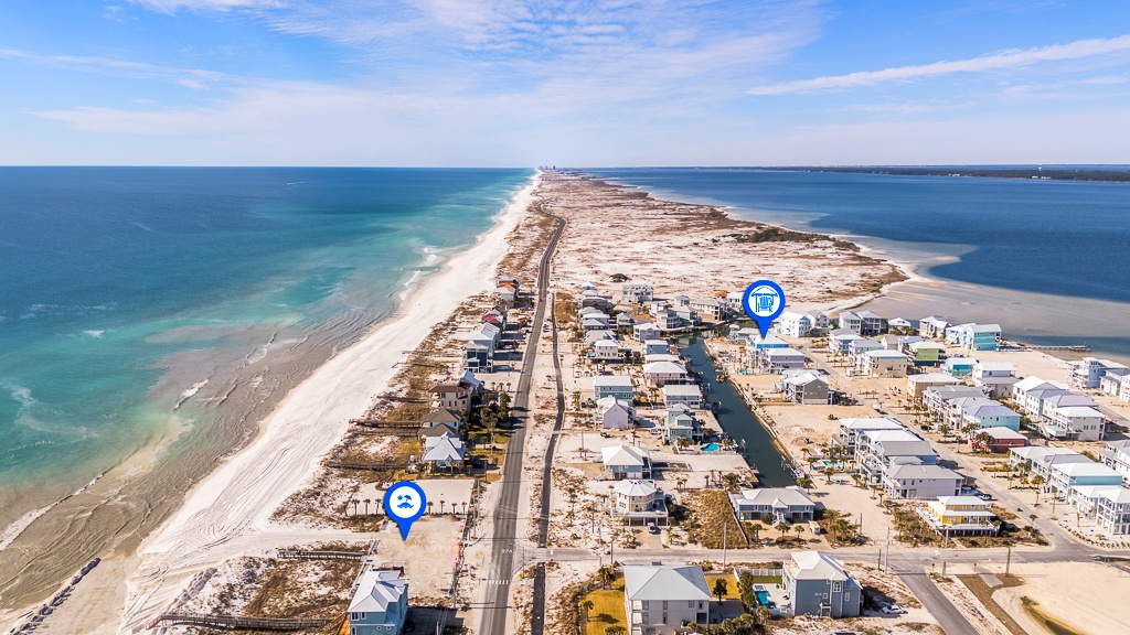 Located at the west end of Navarre Beach in Grand Navarre, this home offers easy beach access, calm canal-frontage for paddling, and proximity to Pensacola Beach.