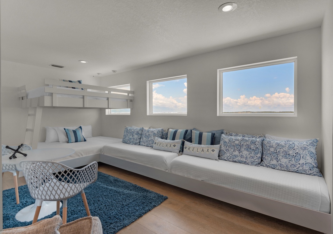 Bedroom #5 (Loft): Queen Bunk Bed + Two Twin Daybeds + Private Bathroom