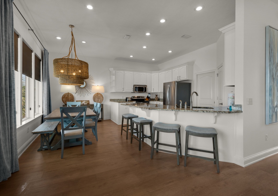 Chef’s Kitchen with Island Seating + Dining Area