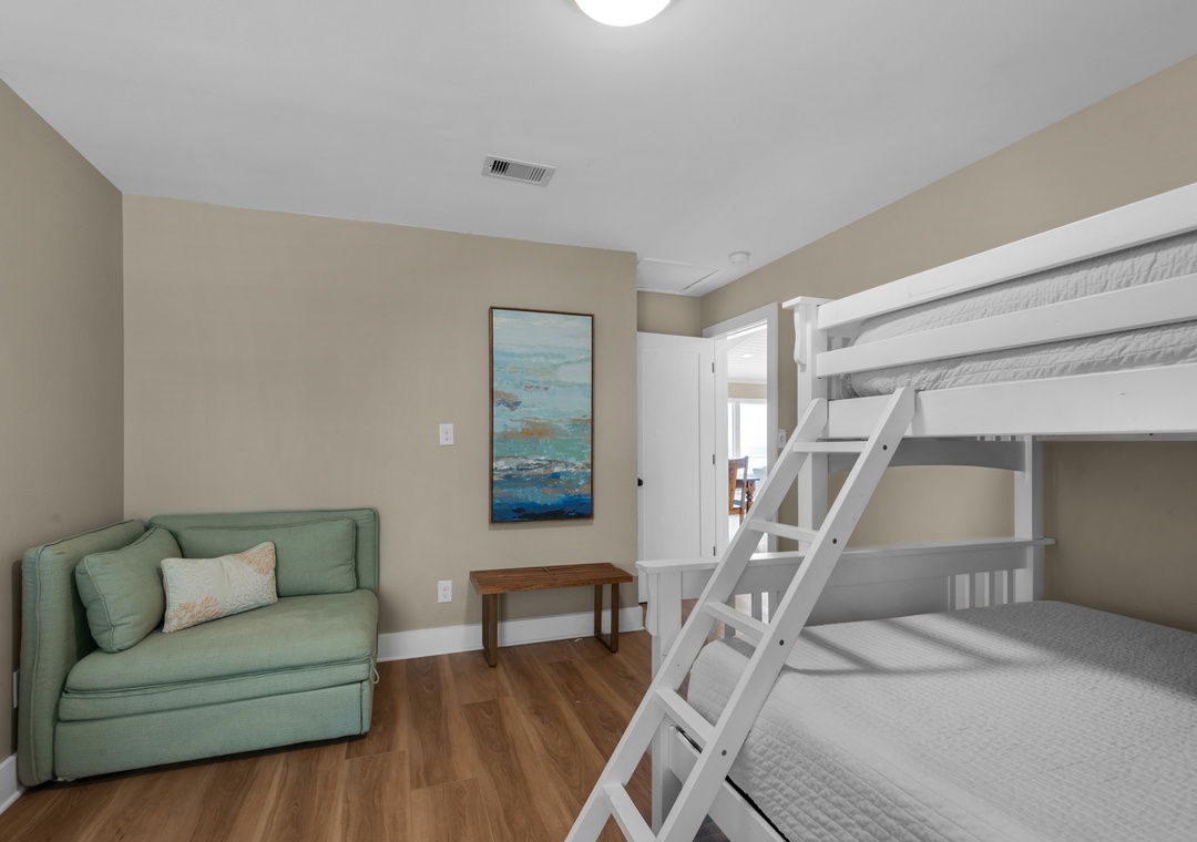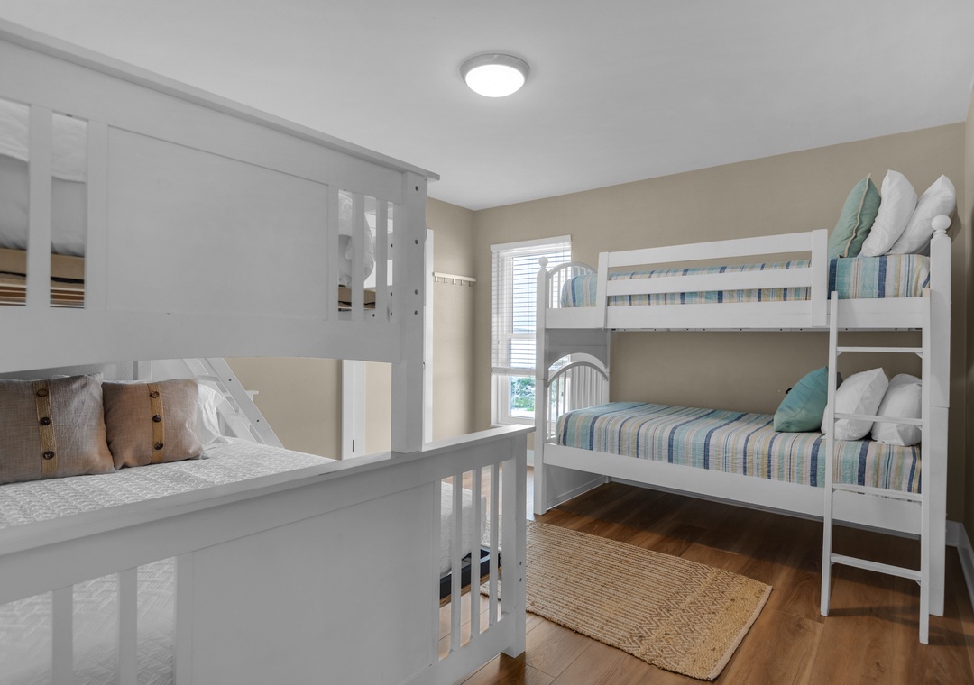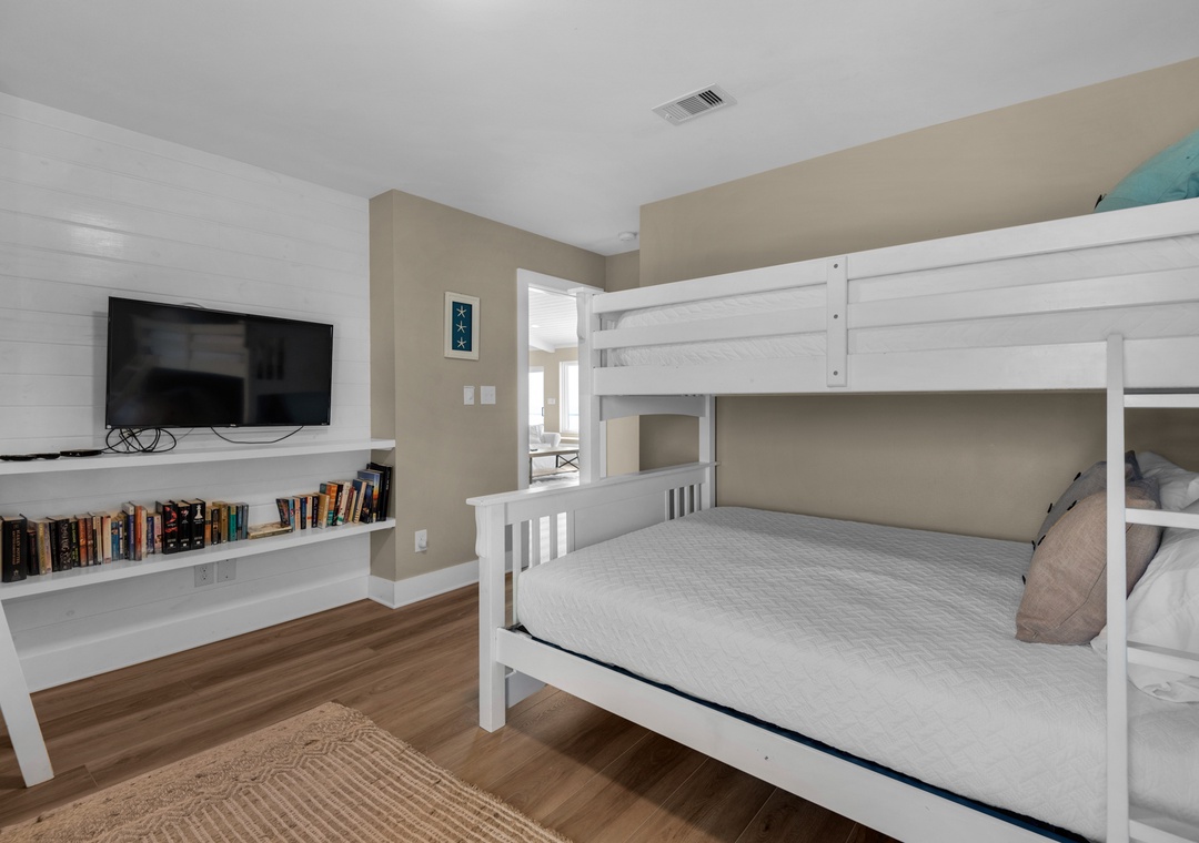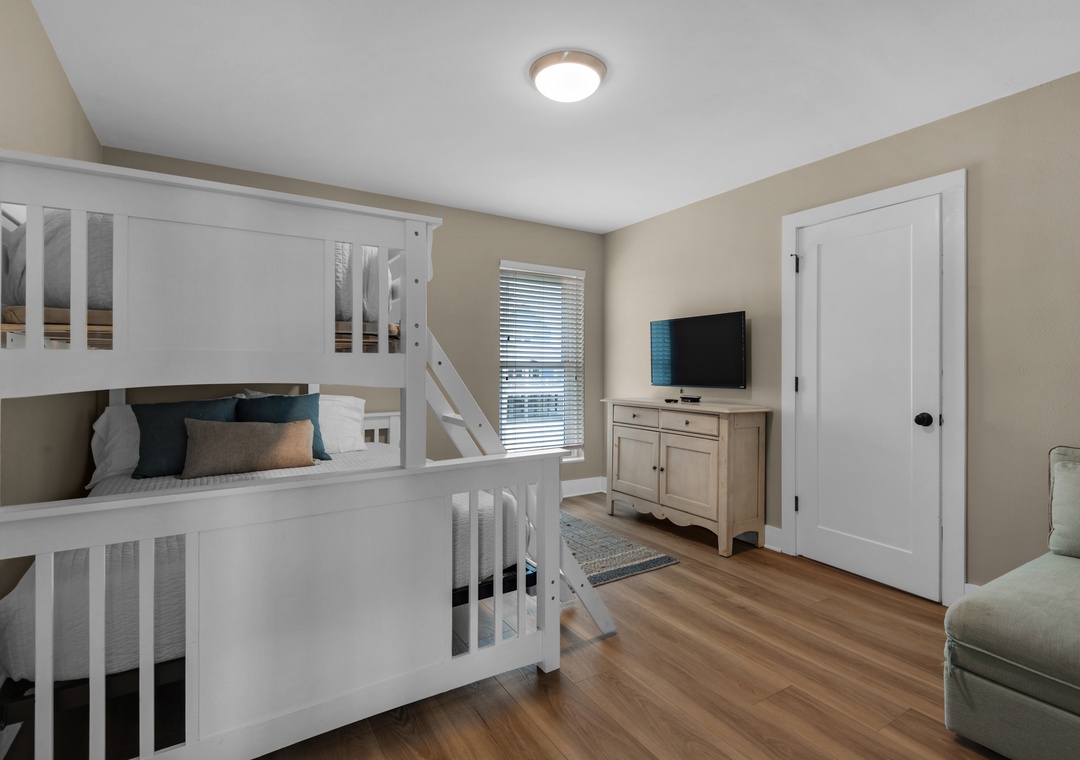 Interior Bunk Room 1 – Twin XL over Queen + Twin over Twin Bunks + Full Bathroom