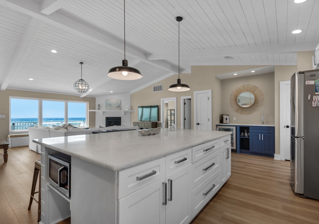 The photos don’t do it justice!! This cabin is right on the beach. It’s absolutely perfect and just what we wanted. I also loved the gorgeous marble countertops. There’s plenty of space and storage for everyone in the kitchen area. It felt super clean and homey. The only “drawback” is that you’re next to a neighborhood beach entrance so we had a couple of groups setting up close to us on the beach. Not a big deal though since it is a public beach. It’s still a million times better than going to the public beach areas. Loved every bit of this vacation!!!- Reviewed On: 5/2/2025
