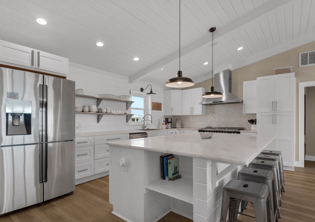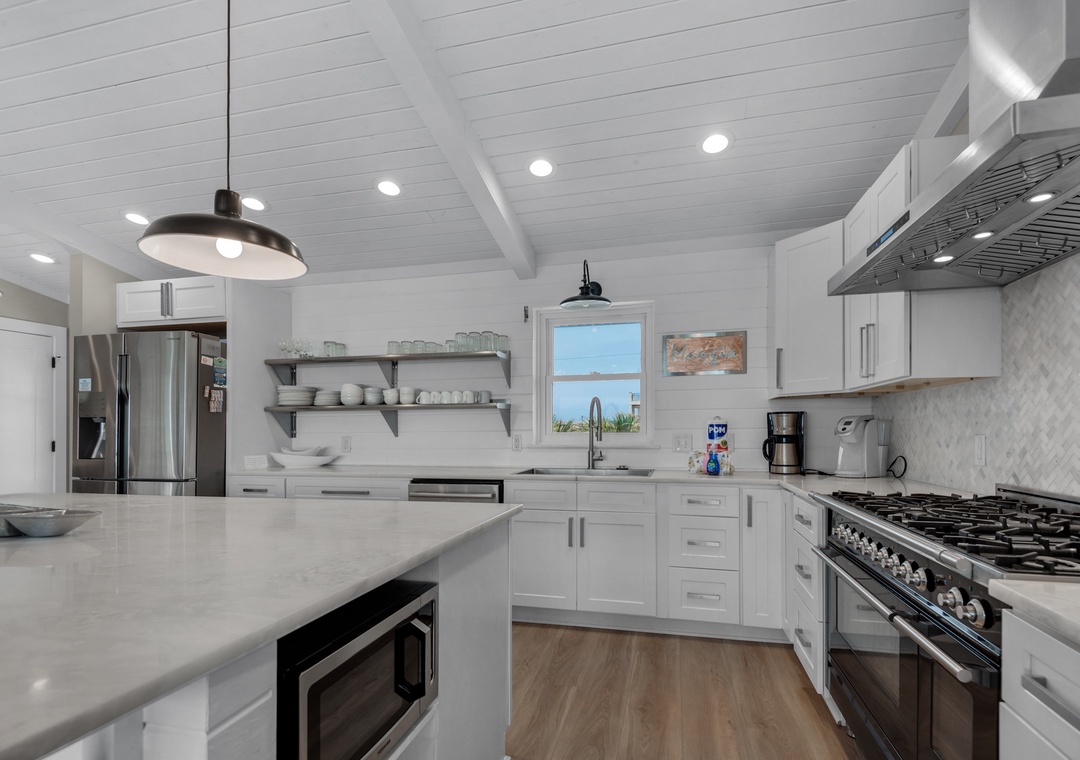 We enjoyed our week at this beach house so much! We were there for a friends and family reunion, celebrating the 4th of July and enjoyed the amazing Blue Angels! The layout of the house was great for everyone and just beautifully decorated and updated! They are not kidding when they say fully stocked kitchen - we had plenty of supplies! Originally I was told there was no secure storage on the ground level, so we did not bring our kayak. But upon arriving, we rec'd the garage code, so there is storage on the ground level! We were bummed since we left our kayak back home (7 hours away), but we managed any how. Also, there is a kuerig machine. That was one other minor missed detail I asked about. Overall, I would definitely recommend and stay here again! Thank you!!- Reviewed On: 7/22/2021