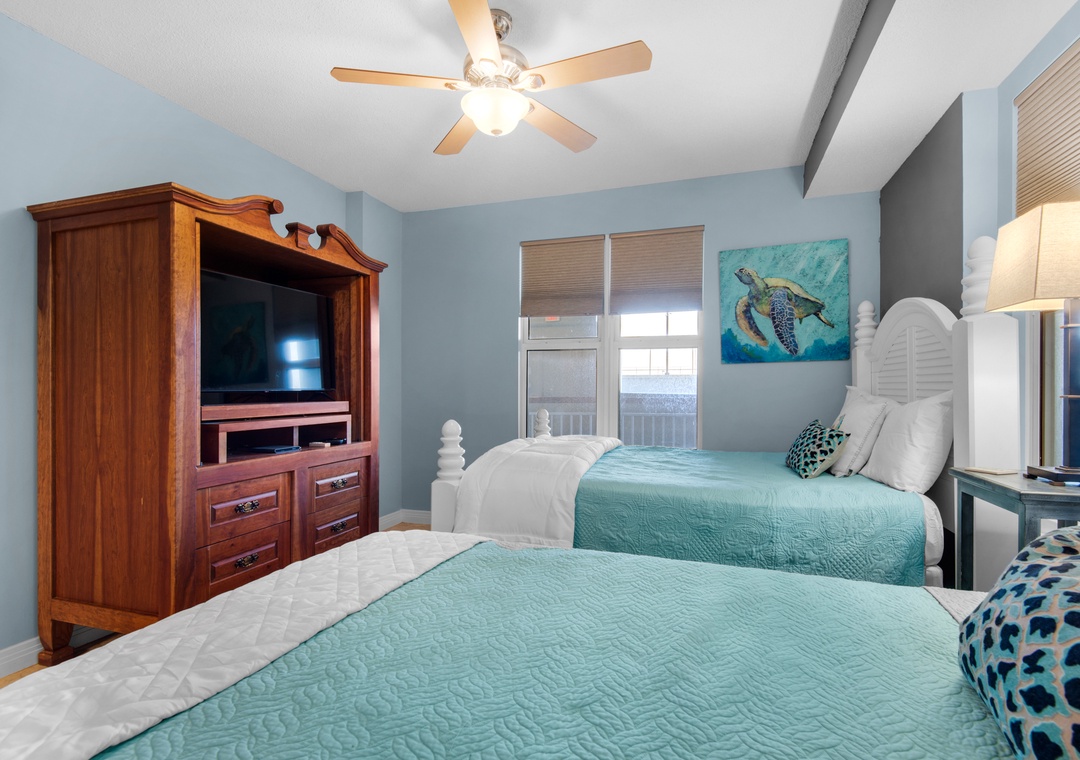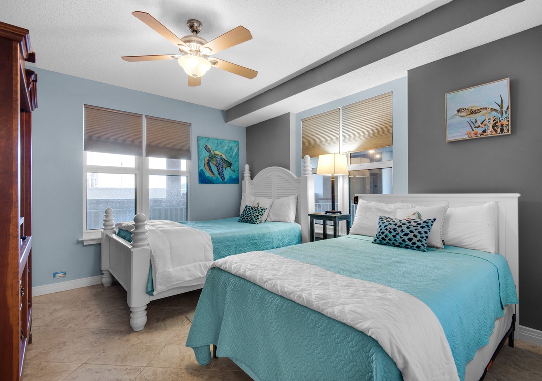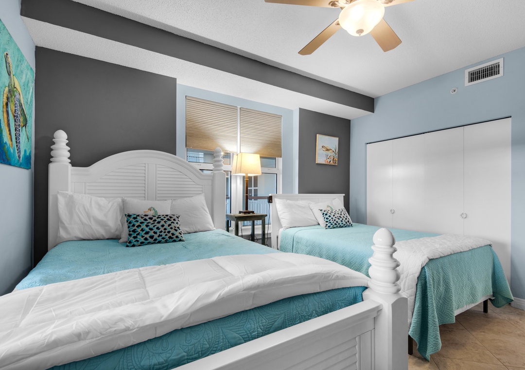 Bedroom #2: Queen Bed + Full Bed, Ensuite Access to Shared Bathroom
