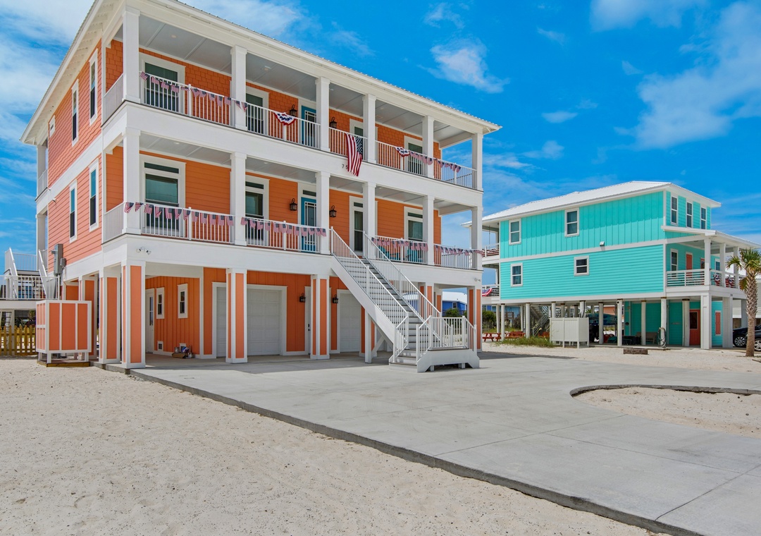 Welcome to Peachy Queen, a show-stopping 3,700-square-foot beach retreat offering luxury, comfort, and ample space for large families or groups. This custom-designed home features an open-concept main floor with a high-end kitchen, dining area, and spacious living room—all boasting Gulf or Sound views. Designer finishing's such as nickel gap walls, tile flooring, and stylish lighting elevate every inch of this home. With an elevator that services all levels, comfort and accessibility are always top priority.