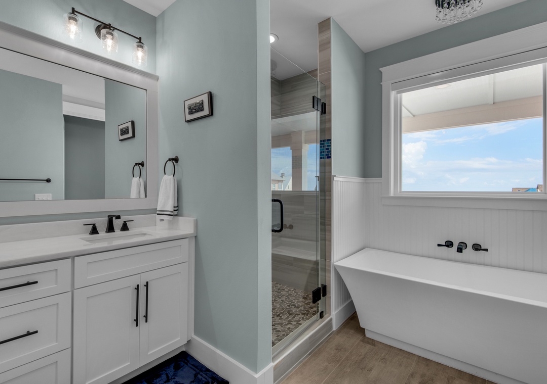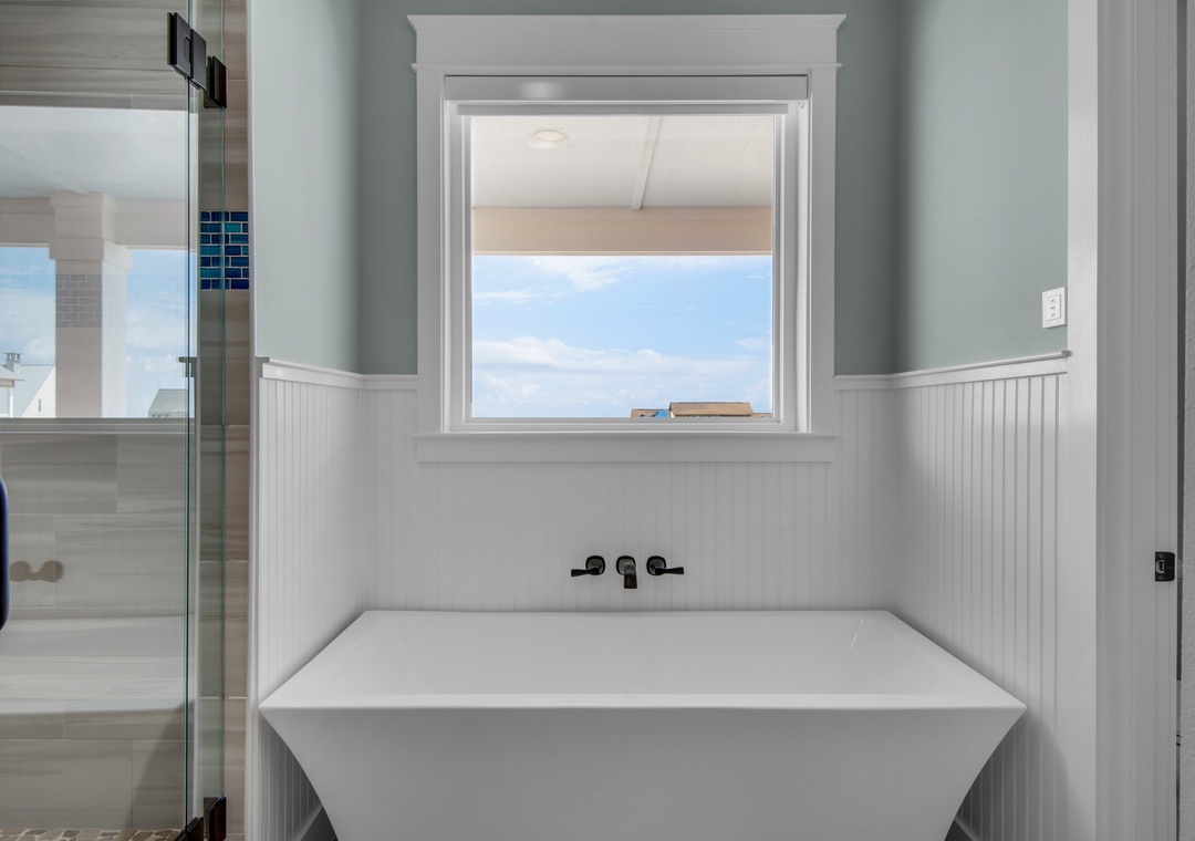 Bedroom #3 (Master Suite): King Bed, Twin Sleeper Sofa, Sound-View Balcony, Ensuite Bath with Soaking Tub