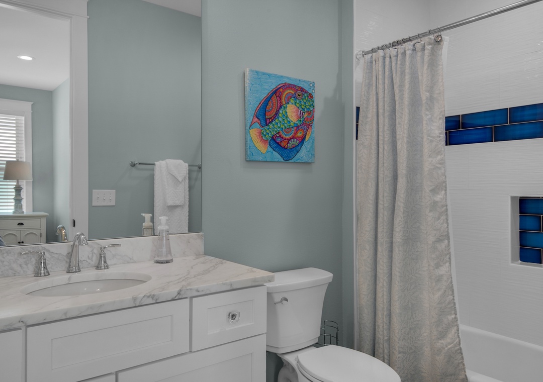 Our extended family of 12 Adults and three small children had plenty of room in the comfortable house. The beach was farther than expected; however, we did pay extra for the golf cart and it was a life saver. All of the bedrooms had their own bathrooms and that was wonderful. The one and only complaint was that one of the bedroom suites did not have a television. Overall, it was great and we would stay there again.- Reviewed On: 6/5/2023