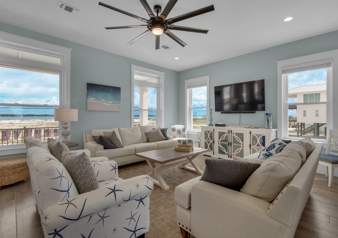 Living Area: Queen Sleeper Sofa, Water Views, Access to Covered Porch