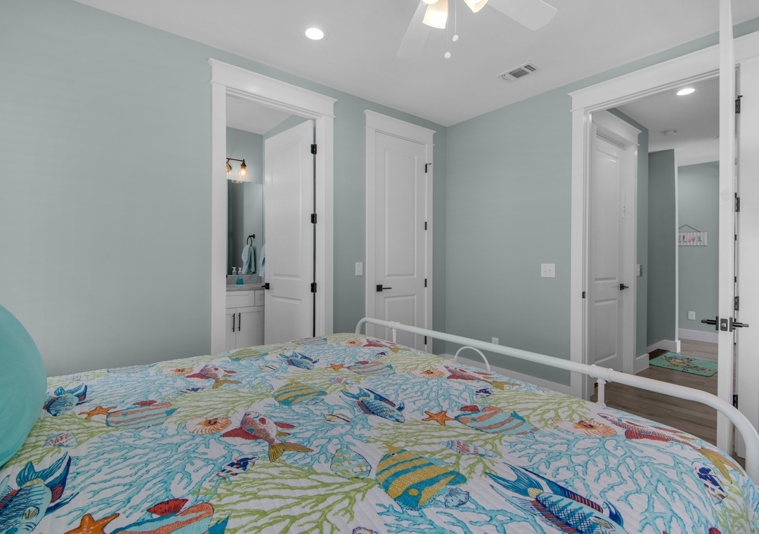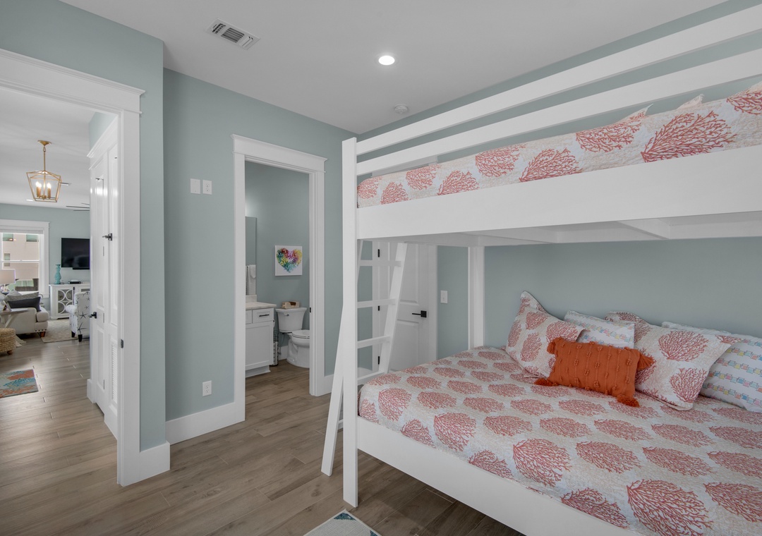 Bedroom #2: Built-in Queen Bunks + Trundle (Sleeps 5), Ensuite Bathroom