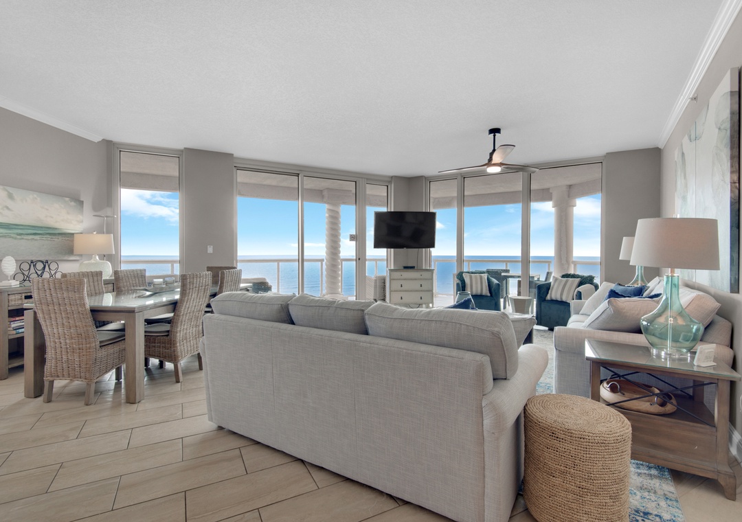 Welcome to Seventh Heaven, a premier Gulf-front residence in Portofino Island’s Tower 1, renovated from top to bottom and offering breathtaking panoramic views of the emerald waters and white sand beaches of Pensacola. This elite 3-bedroom, 3.5-bathroom unit spans 2,050 sq ft and is ideal for guests who expect both refined comfort and world-class amenities.