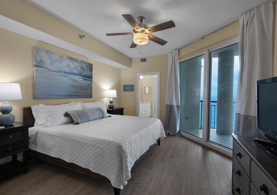 Bedroom #1 (Primary): King Bed, Ensuite Bath with Jacuzzi Tub & Shower, Balcony Access