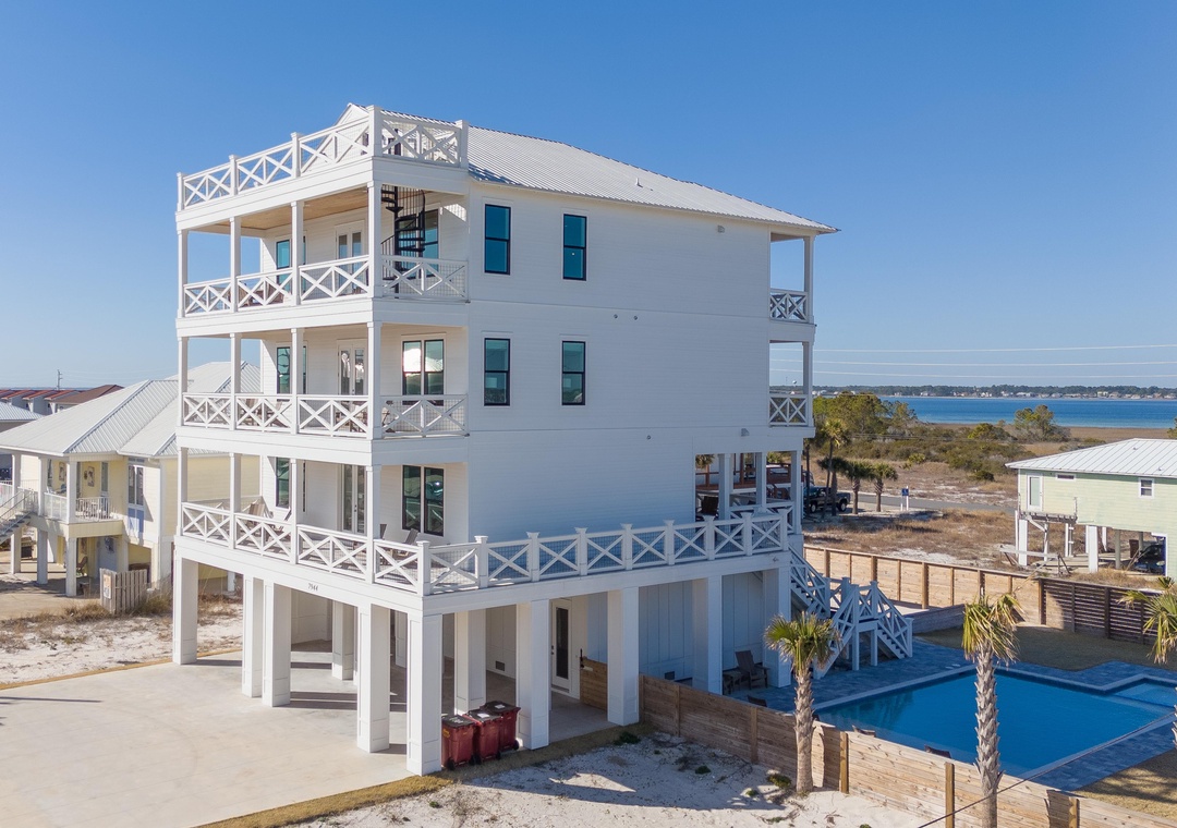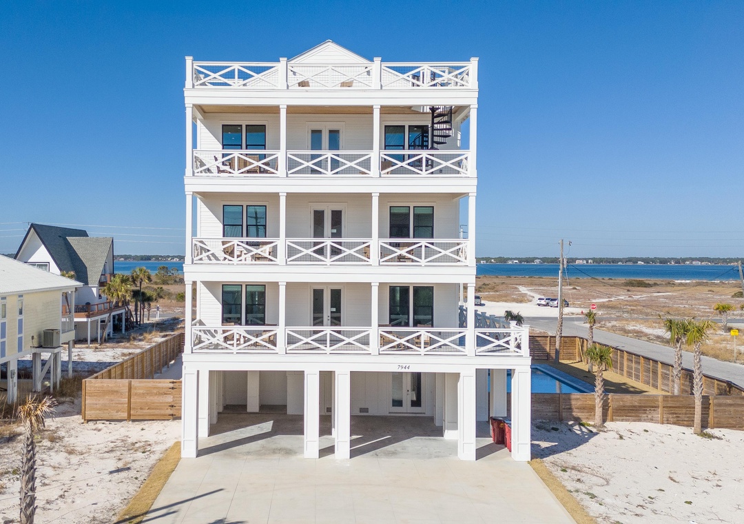 Sky High is a brand-new, custom-built luxury home that redefines the vacation experience. Spanning four floors and connected by a private elevator, this architectural masterpiece combines modern elegance with ultimate comfort—all just steps from the emerald green waters and sugar-white sands of the Gulf Coast.