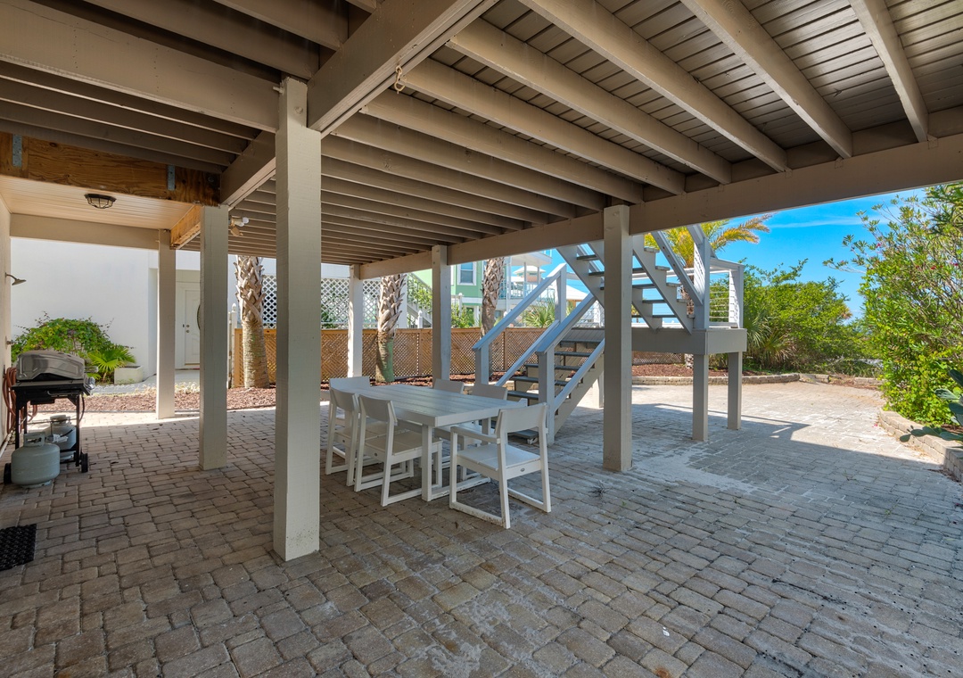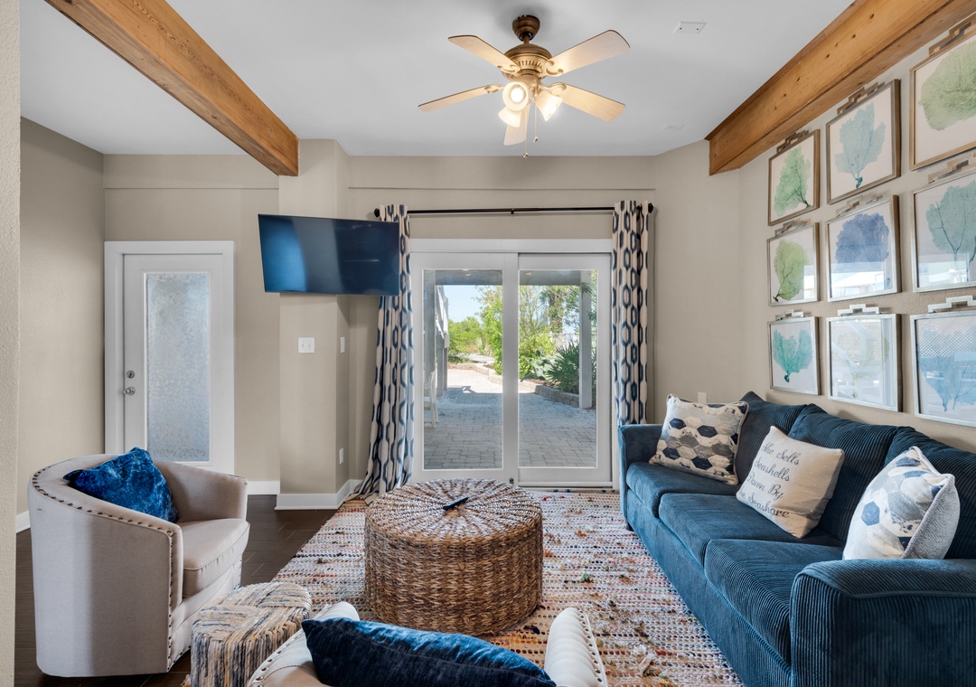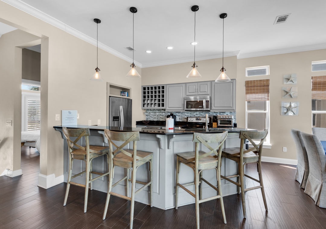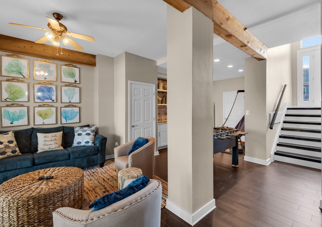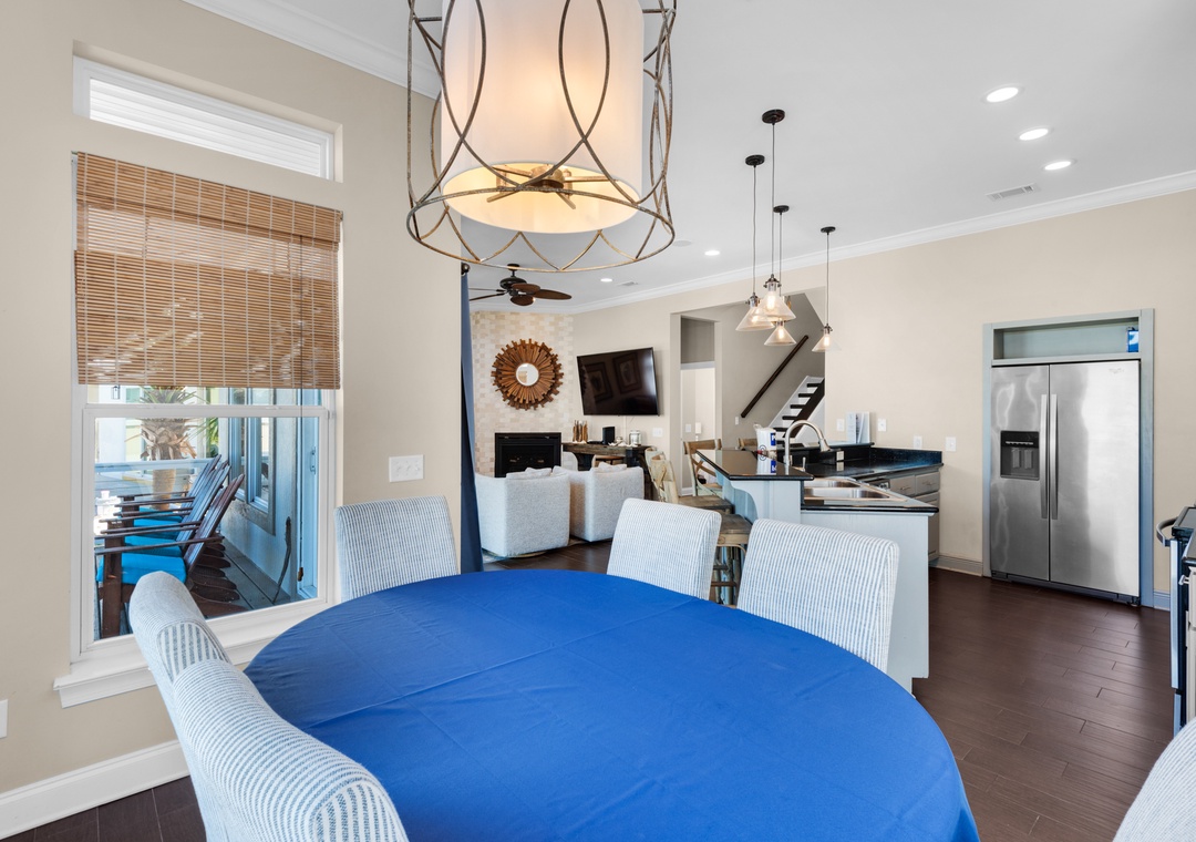 Located along the calm waters of the Santa Rosa Sound, Sun Dancer offers tranquil views, lush landscaping, and access to a sandy beachfront and pier—perfect for swimming, paddleboarding, and fishing. Nestled in a quiet Navarre neighborhood, this spacious three-story home is designed for families and friends to relax and reconnect.