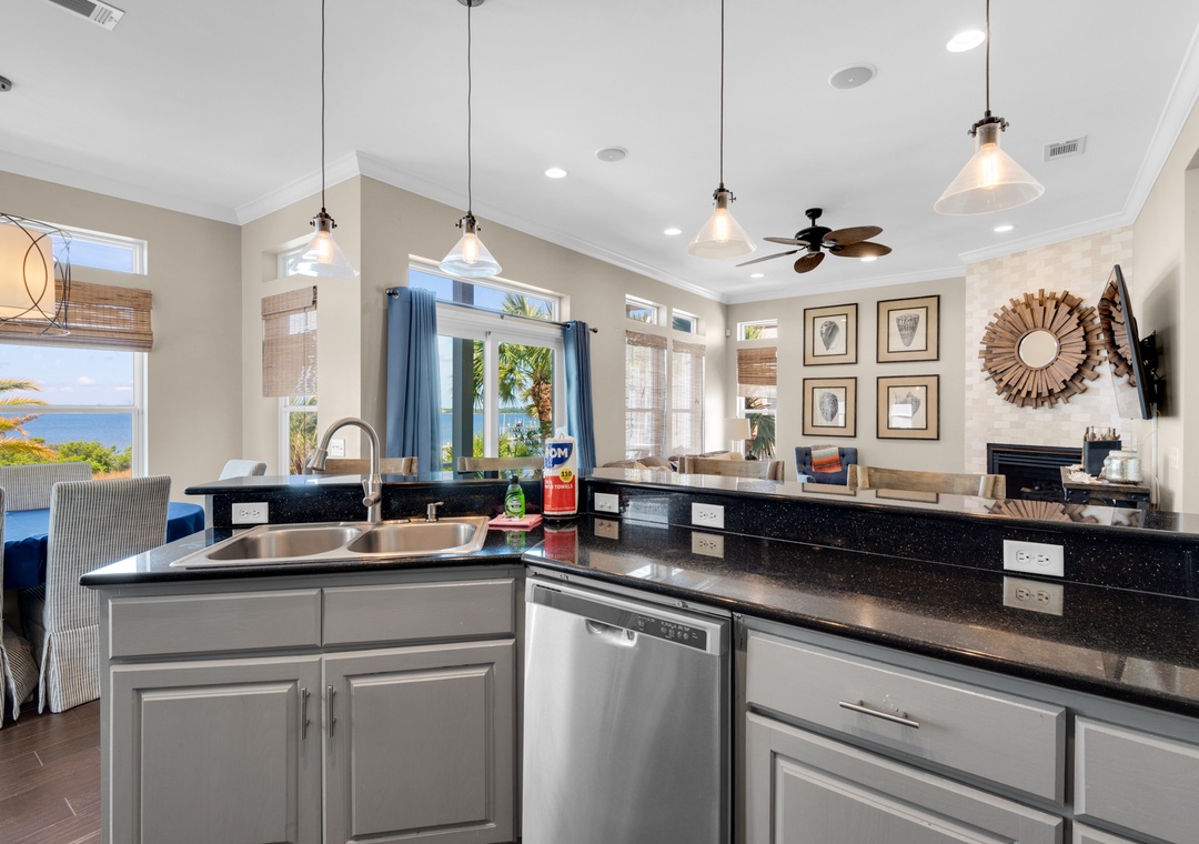 This was the 1st time staying at this vacation rental. We take our children, grand-children & great-grand children. This year even with the stairs (we had 4 under 4yrs of age) which took a little attention for the 2 youngest, it was a great place. The older grandchildren (21 to 16) enjoyed there space in the bonus room and bunk room. The pier going out into the bay was awesome. Everyone loved the access we had to the neighborhood pool (a plus, it was heated) and the gulf was only a short walk (1/2 mile) and the Navarre Pier was only a mile away. We had to bring our own bikes & canoe's (the place we rented last year had both) but other than that, it was an awesome place. Except for the few days in which we got rain, we were treated to some awesome sunsets. The beach on the bay side was excellent for the younger children. The only issue I had was the 1 time I tried the dishwasher, it did not do a good job. As it is a rental, I assume others were not careful as the wheels on the right side had come loose & had melted a little as it fell under the drying element. There were many so doing dishes by hand was easy enough. Paper plates helped to give us less to wash. We look forward to staying there again next year. Just hope the dishwasher is fixed. Other than that little "hick-up", it is an AWESOME place for a family vacation.- Reviewed On: 4/11/2016