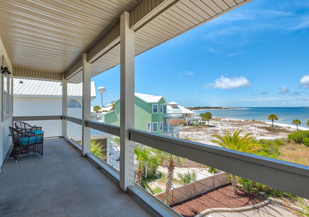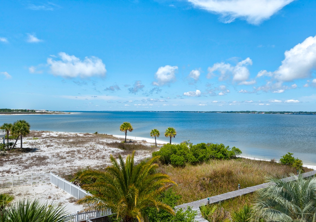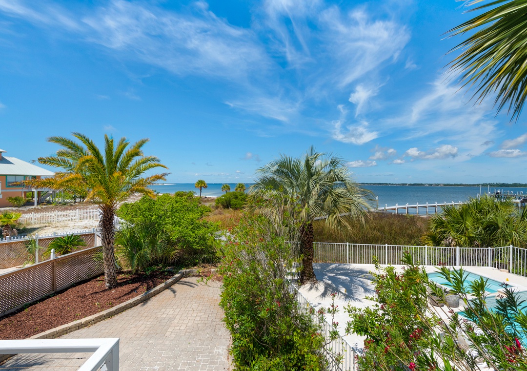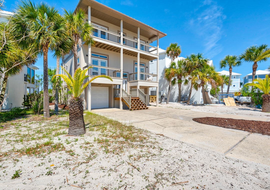We just returned from a week here. We had 2 families (5 adults, 4 kids). The house is on the sound side with a dock leading to the beach. It was beautiful, private, calm. We never even went over to the Gulf side, no need to! Holly/Greg were great to work with, answered questions quickly and even had a new grill delivered when we inquired. We'd definitely stay here again! We've done this type of trip for 7 years and this is the best experience we've had so far (with home and management). Thanks for a memorable trip!- Reviewed On: 4/18/2014