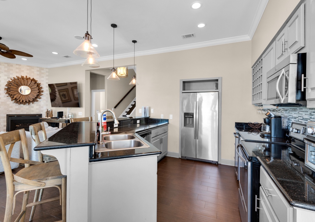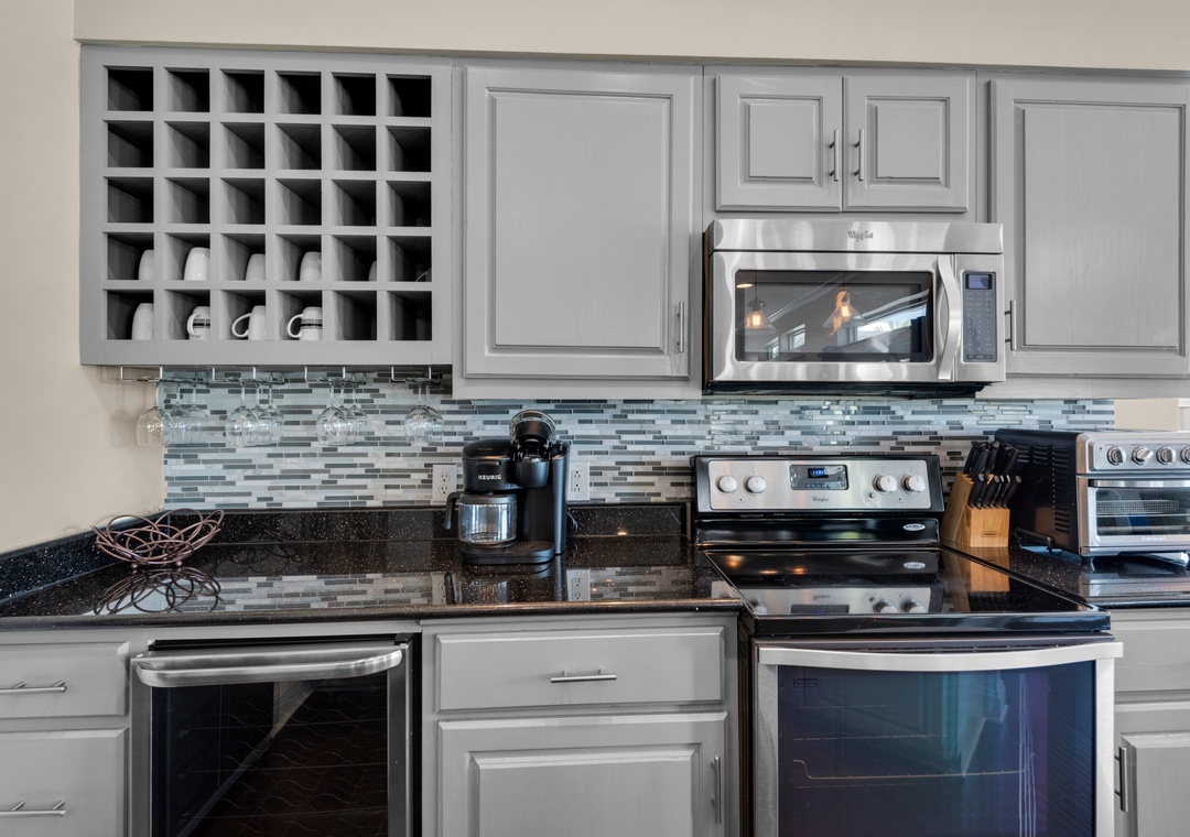 Kitchenette: Full-Size Fridge, Microwave, Sink, Washer/Dryer