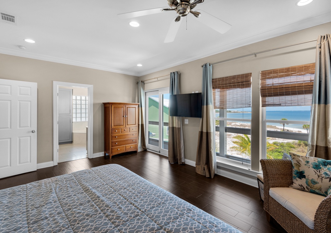 Bedroom #3 (Primary): King Bed, Private Balcony with Sound Views, Ensuite Bathroom