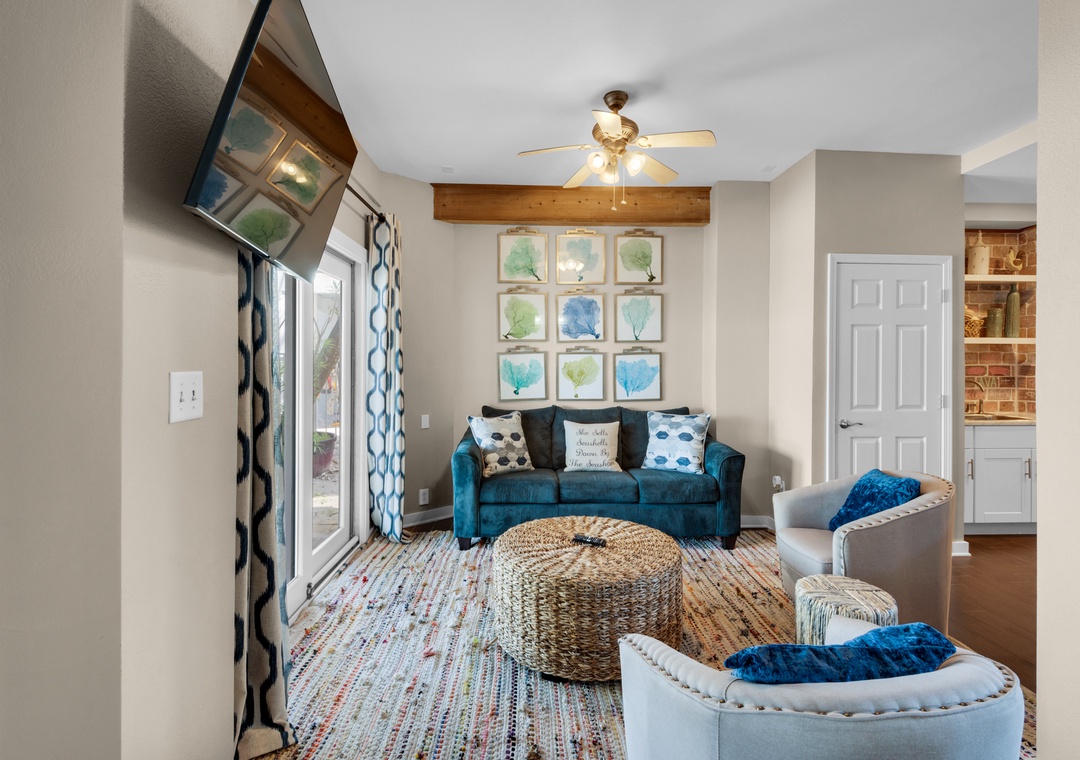 Bonus Den: Sleeper Sofa, Swivel Chair, Flat-Screen TV
