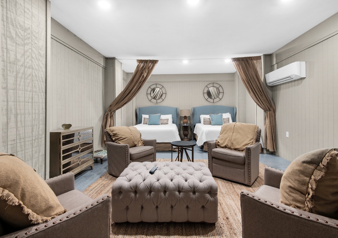 Bedroom 7: Two Queen Beds + Private Bathroom + Sitting Area + Pool Access