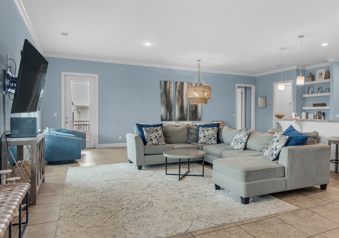 This home is large, spacious and beautifully decorated. My son is in the Navy and was getting married over the weekend. We had many family members coming in from out of town and instead of staying in a stuffy hotel we decided to stay together in a large beach house. This house was perfect for our group. The exterior of the house probably needs a paint job to brighten it up. However, don't let that weathered exterior look fool you. The interior of this House is unbelievably gorgeous!!! Immediately, when you walk through the front doors your jaw will drop. This home is fabulous!!!! It was super clean, very spacious and decorated to the nines. The kitchen and living room area was our main hub every night to gather for dinner. We cooked every night where and enjoyed a meal comfortably in the large open kitchen and living room area. There was no shortage of seating to enjoy one another. The guys loved even watching football on the main TV . We prepared a large meal almost every night except for the wedding night. The kitchen was fully equipped with an enormous amounts of utensils, pots, pans , glass wear, appliances as well as all bar essentials (blender, cork screws,etc). So it gets better - Two dishwasher, two full size refrigerators was a major plus for our family. The gorgeous "quiet" Beach was directly across the street where it was literally steps from the house. The crystal blue in-ground pool in the back yard was just the icing on the cake. Plenty of out door seating on all of the decks areas. The rocking chairs and the grill on the pool deck was so relaxing. The Property manager was more than helpful and answered all my questions promptly. I Cannot not say enough good things about this property. Seriously Beautiful we will stay there again as long as my son is in Pensacola. Highly recommend for any family gatherings for all ages. Perfect!!- Reviewed On: 10/19/2021