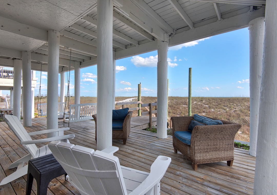 * Wraparound Main-Level Deck with Gulf Views + Grill