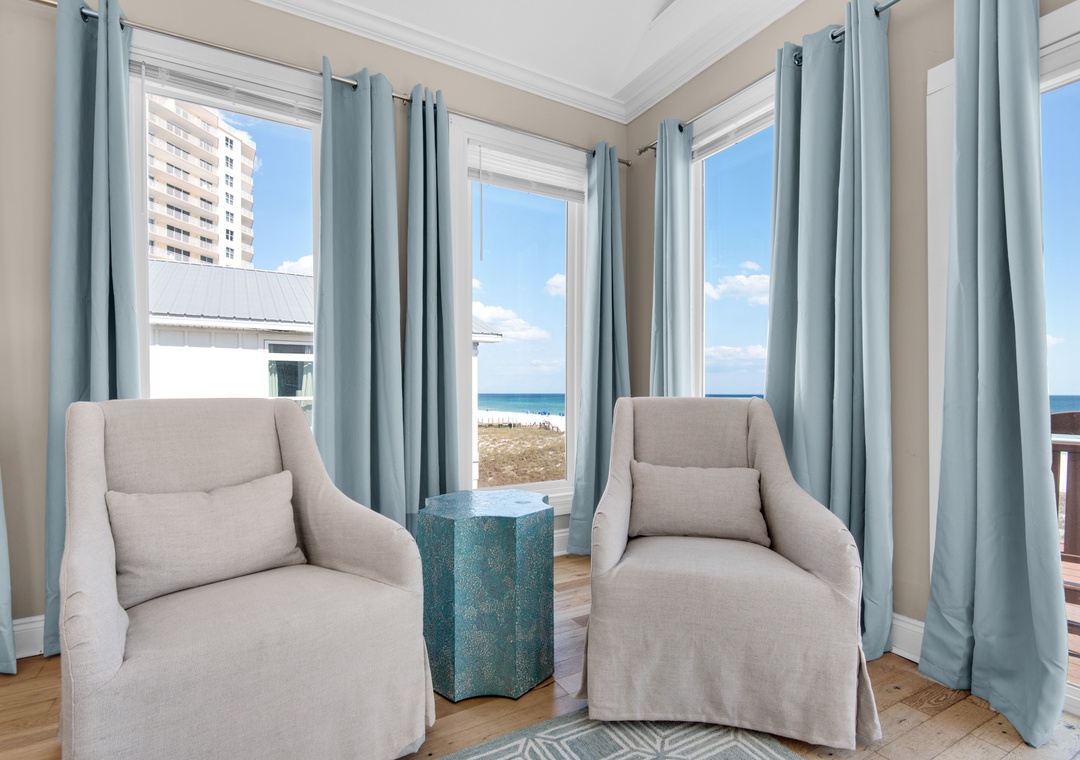 To start this review I must absolutely rant and rave about the location and Mother Nature's magnificence. This property is located on one of the most beautiful expanses of beach that you will find anywhere. White sands, extremely clean (almost no weeds, or natural or manmade debris), and crystal clear water. Fantastic! Regarding the property itself, we were very pleased. The views from it's multiple decks were amazing, and recent updates were beautiful. The the property was well furnished and amenities were extensive. Truly a great place for our group to enjoy the joys of oceanfront living, if only for a few days. If I were to cite a couple of things for improvement I must cite the check-in and check-out times. Checking in at 5:00 pm on one day, and checking out by 10:00 am on another day in essence reduces, for example, a four day stay to only 3 1/2 days. Are 7 hours really necessary for cleaning? A couple other minor things were that the keypad on the lower level was extremely temperamental (we almost never could get it to work), and while the grilling surface on the outdoor grill was clean the burner area (underneath the grates) was filthy. (It burst into flames as soon as we lit the burners.) I would also like to take a minutes to compliment the city of Navarre Beach. A lovely city! Clean, plenty of restaurants, and in close proximity to grocery stores and other retail establishments. I would also be remiss if I did not mention the pier. Amazing facility and a walk out to the end is well worth the time and effort. Bottom line: This property is highly recommended!- Reviewed On: 8/14/2022