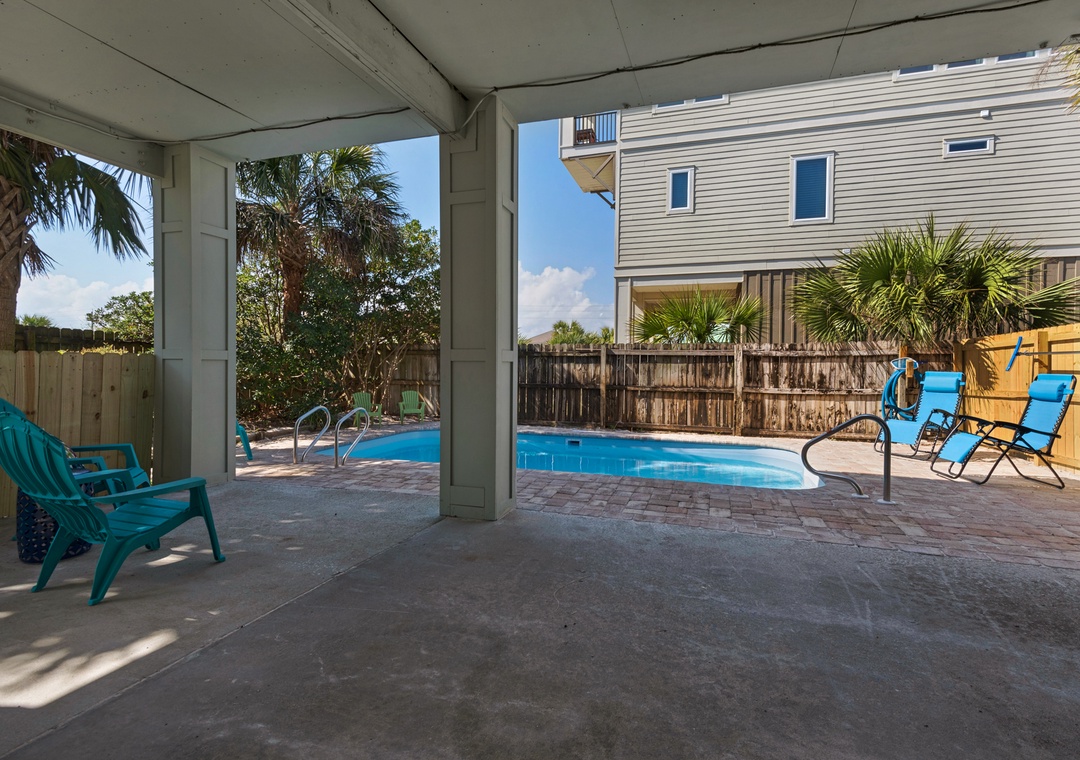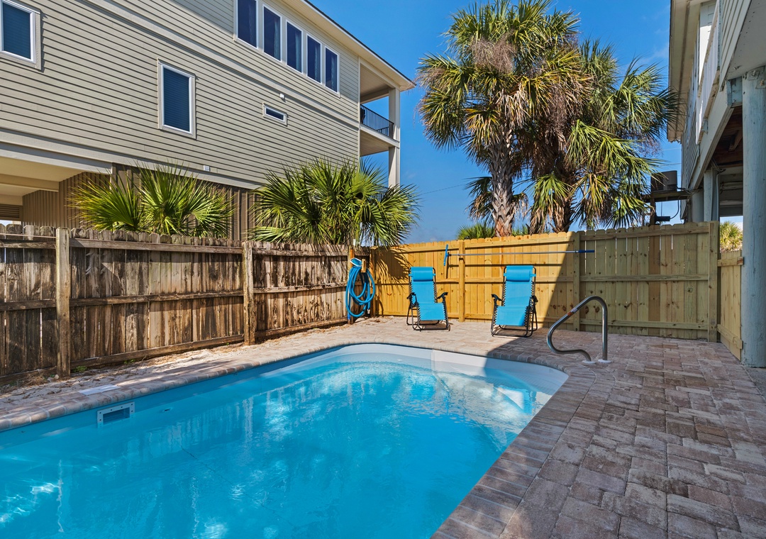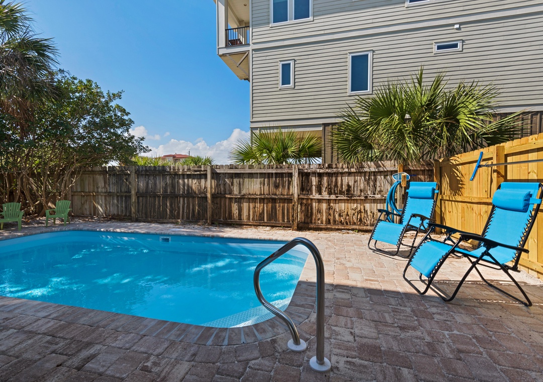 * Private backyard pool with shaded and sunny lounging areas and optional heat*