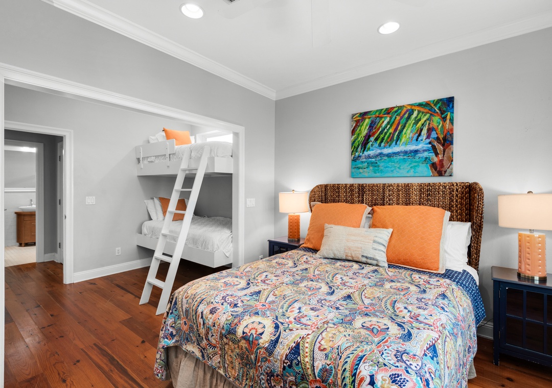 Bedroom 5: Queen Bed + Twin over Twin Bunk Bed