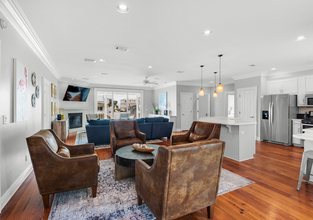 Welcome to The Sunshine Gulfside, a bright and breezy retreat designed with large groups and multi-family vacations in mind. Located on beautiful Santa Rosa Island, this coastal escape features an open-concept great room, stylish decor, and a fully equipped kitchen perfect for gathering and entertaining. Open the sliding doors to enjoy sea breezes or step outside to a spacious Gulf-view deck with outdoor dining space. Downstairs, the private pool area offers plenty of room to play, relax, or dine under the sun and stars.